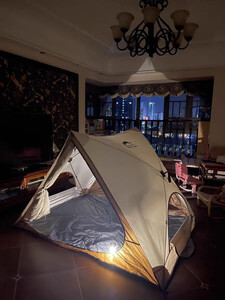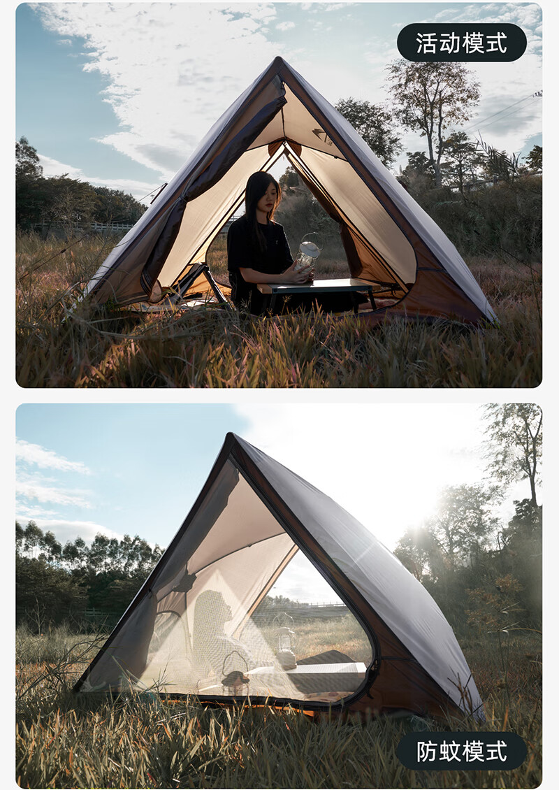 帐篷很好用,周末和朋友去海边玩用了,体验很不错,露营晚上有小虫子和蚊子关闭防蚊的那一层就好了,痛风性叶很好,双层设计很实用。