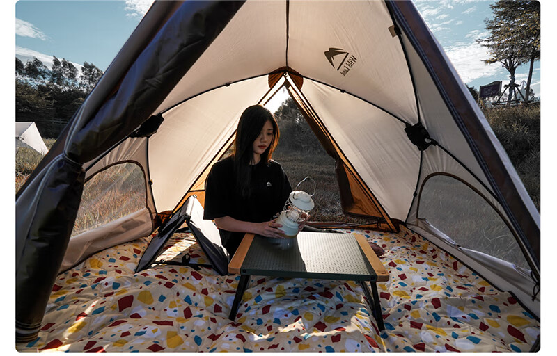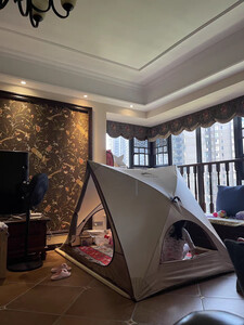 做了很久功课 最终选的这款帐篷 简易又颜值高 帐篷里最亮的仔 而且重量轻 最喜欢的是纱帐 适合夏天带出门不怕蚊虫叮咬孩子