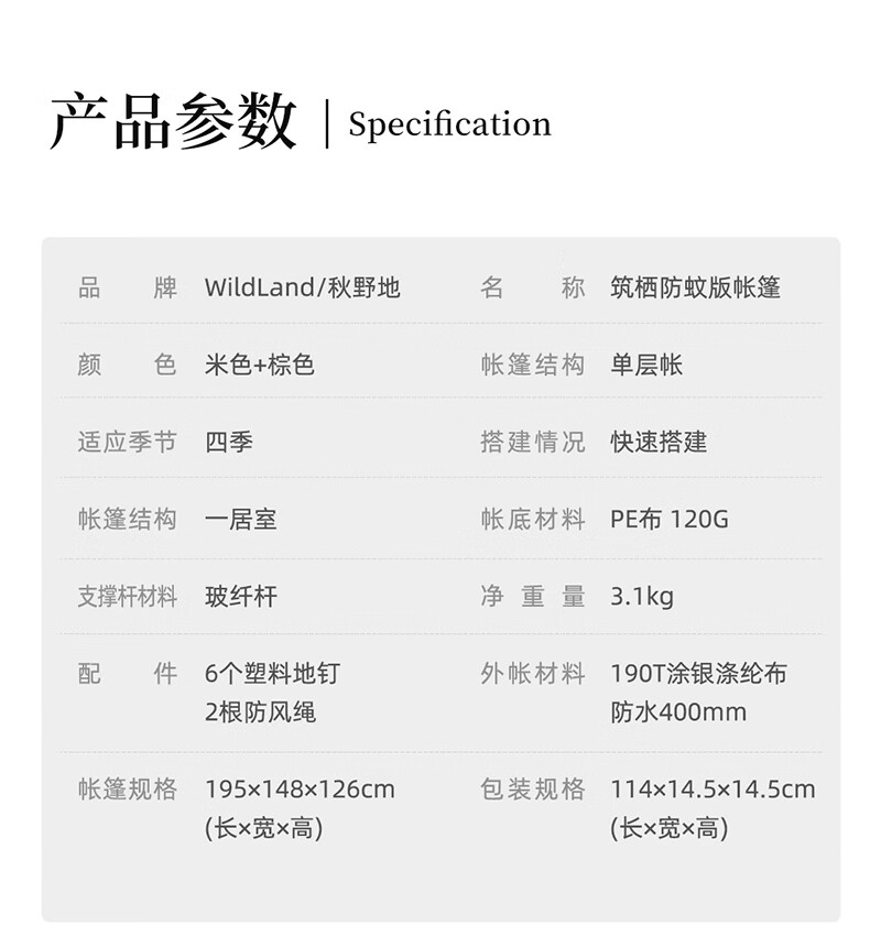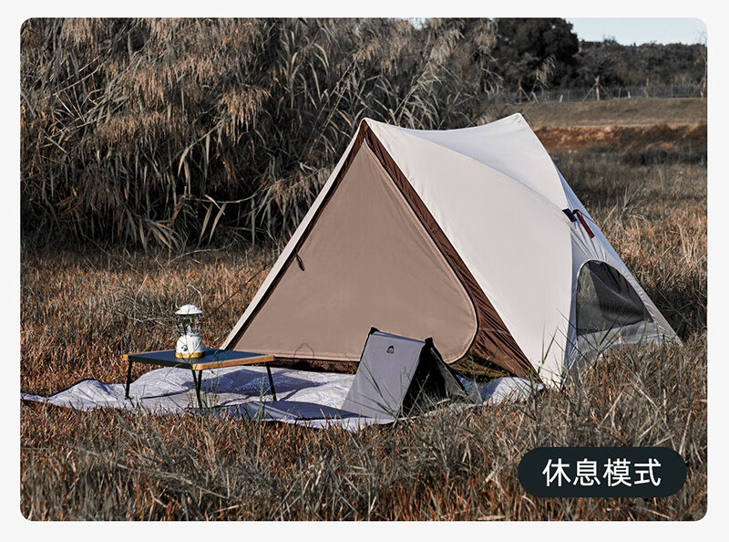 秋野地(Wild Land) 筑栖户外帐篷露营遮阳便携式速开免搭防晒防风防蚊沙滩草地帐篷 米色+棕色(窗户带网纱)