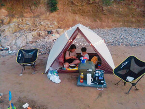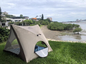 用来海边露营真不错,打开收纳都很方便。前后通风防蚊子,买过的三个帐篷中最喜欢的一个。