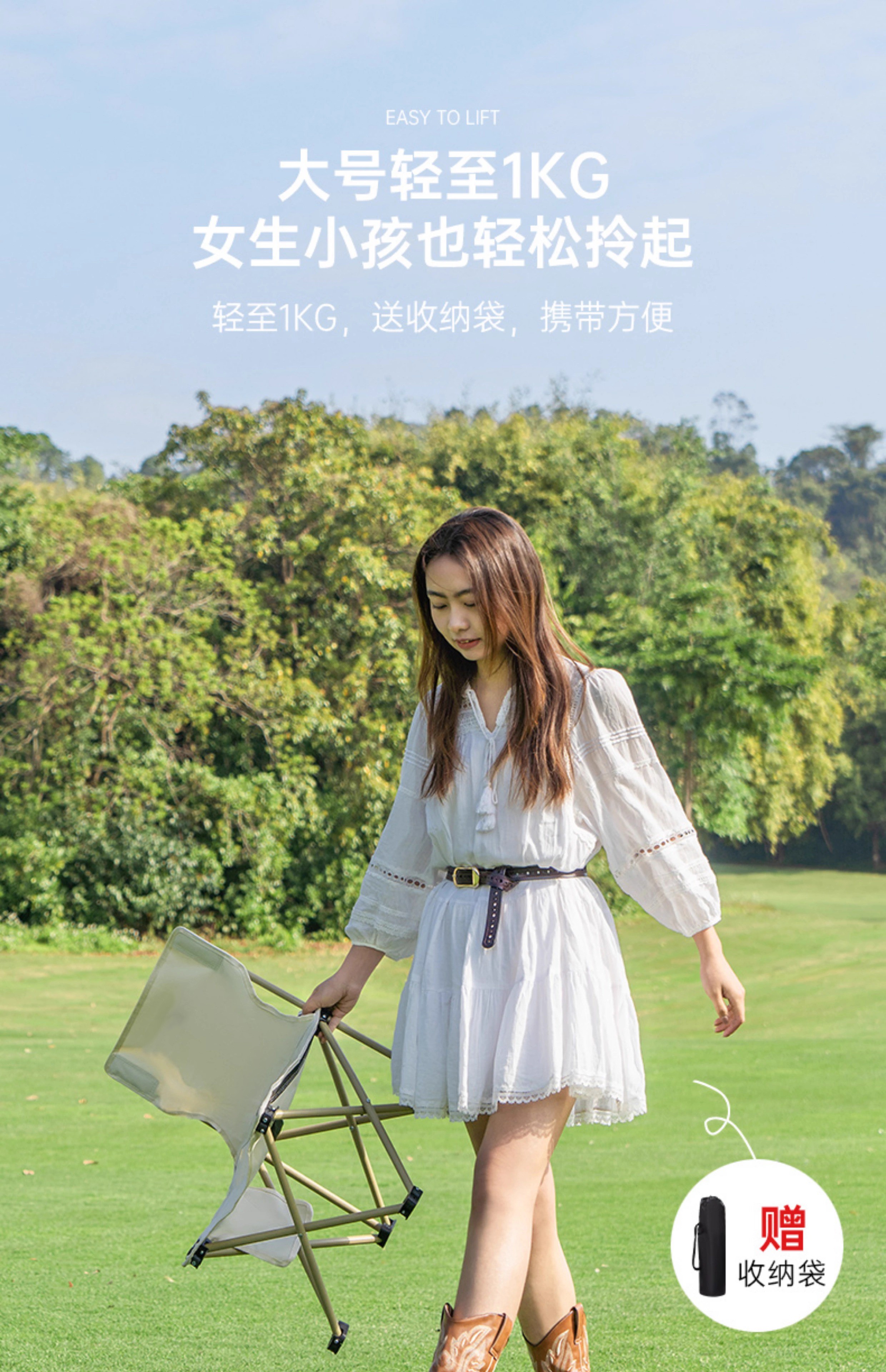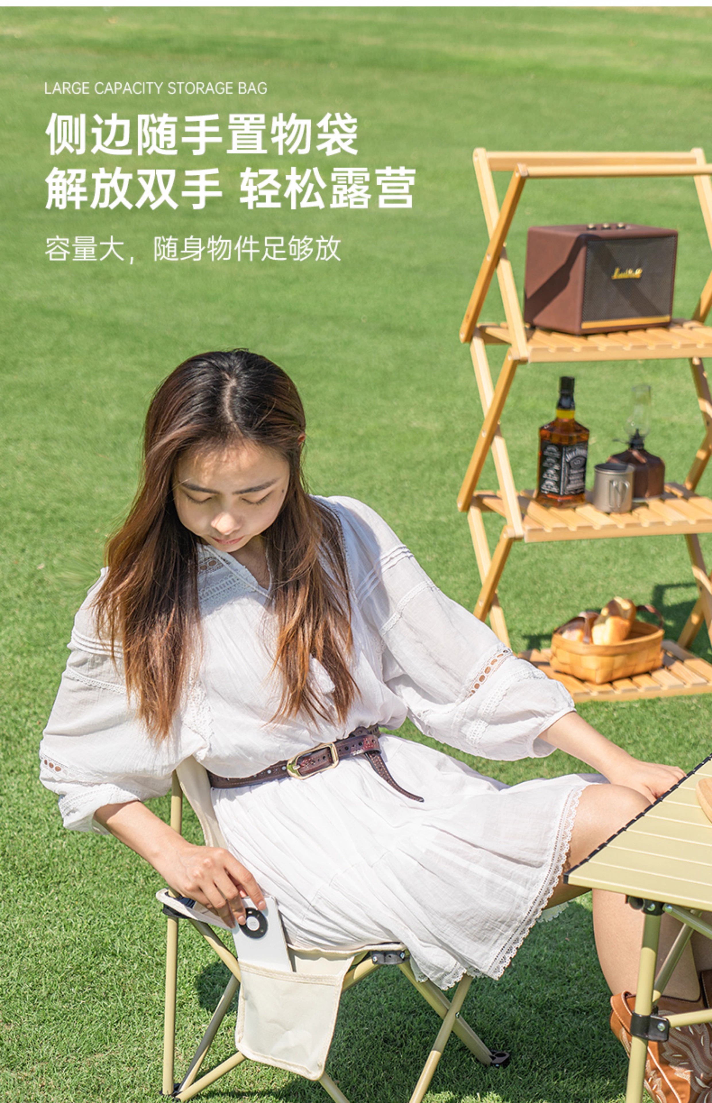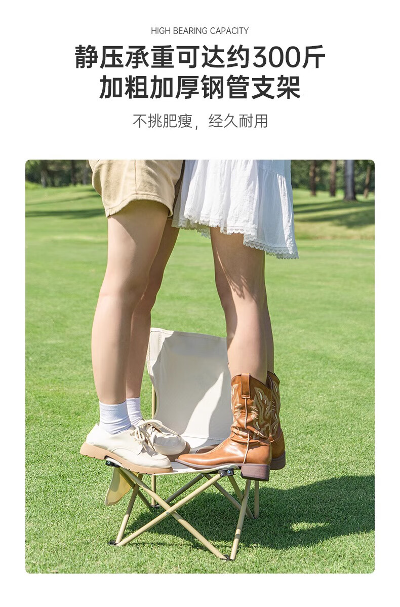 游山然户外露营高背月亮椅便携折叠椅子钓鱼摆摊凳子 白色大号(送收纳袋)