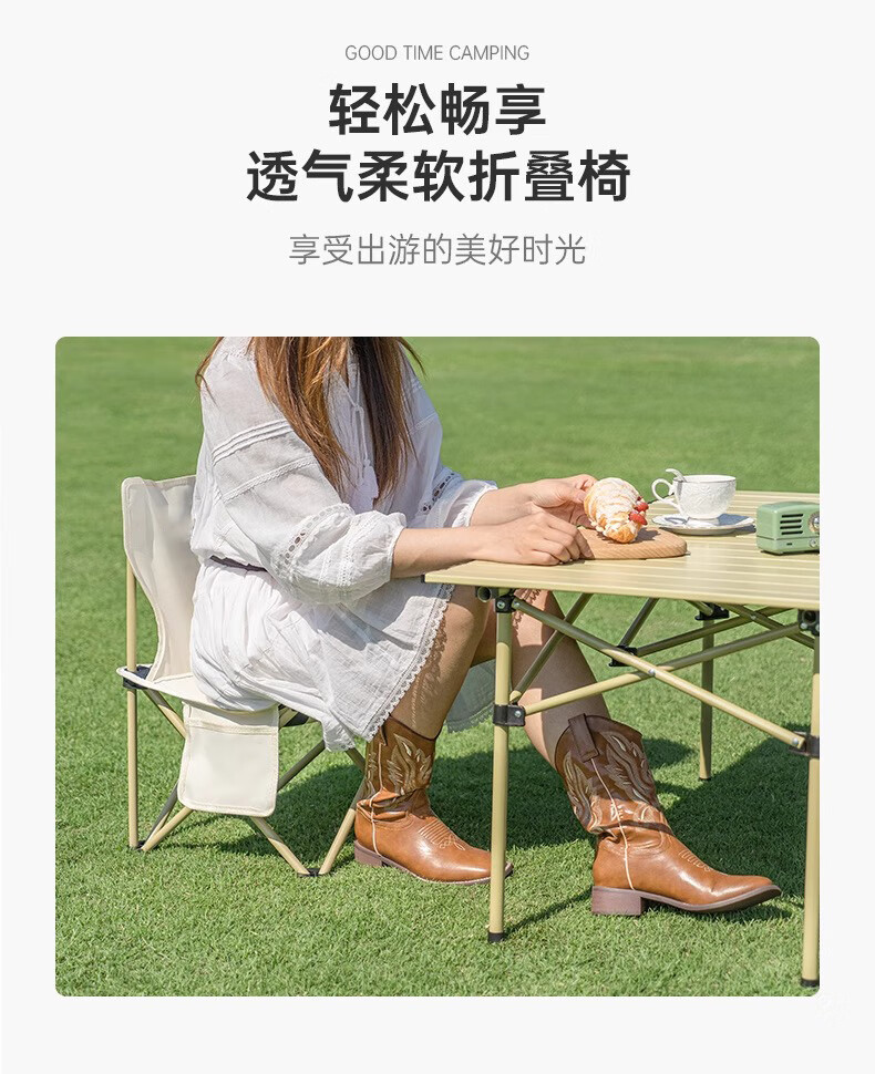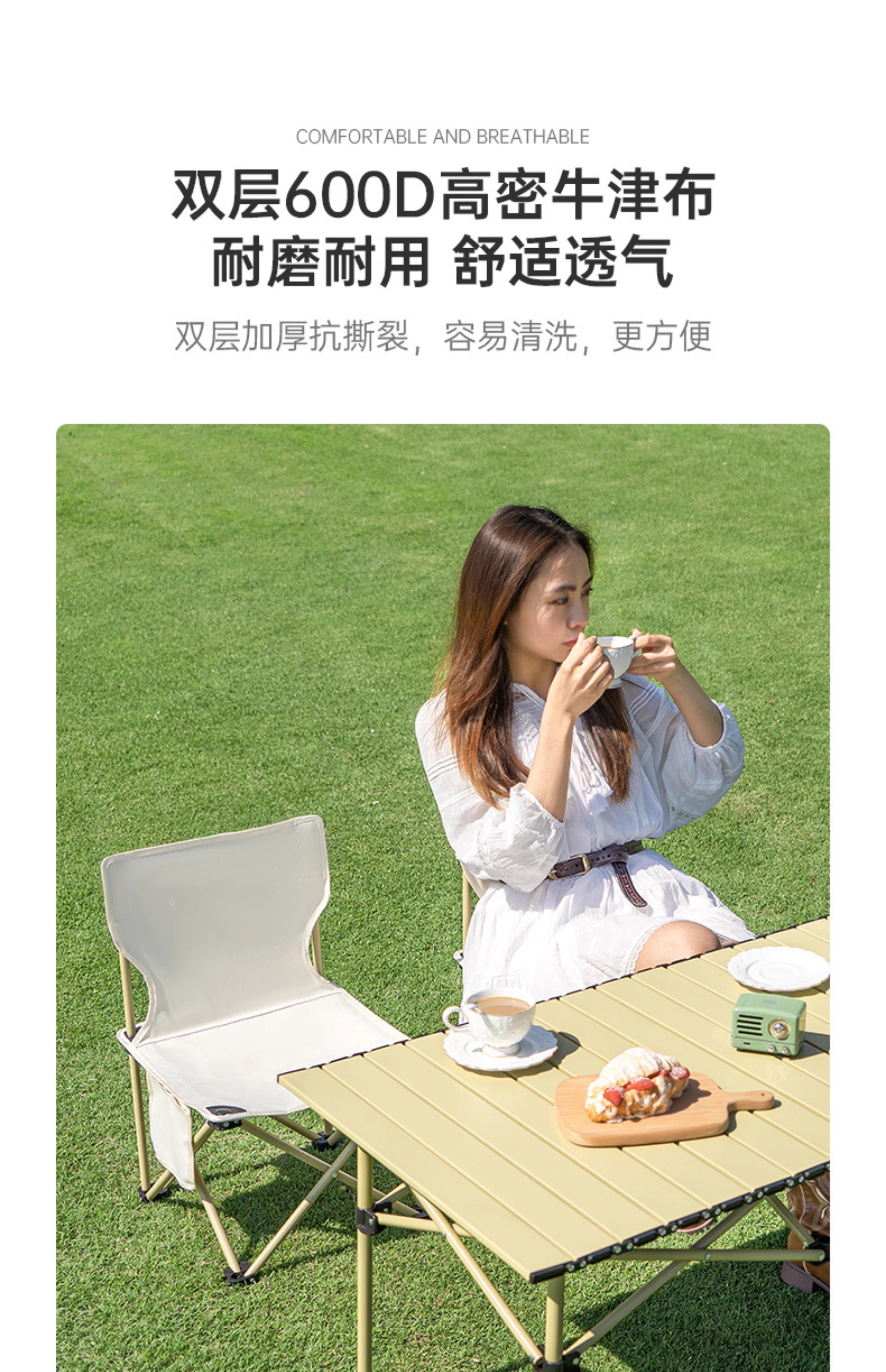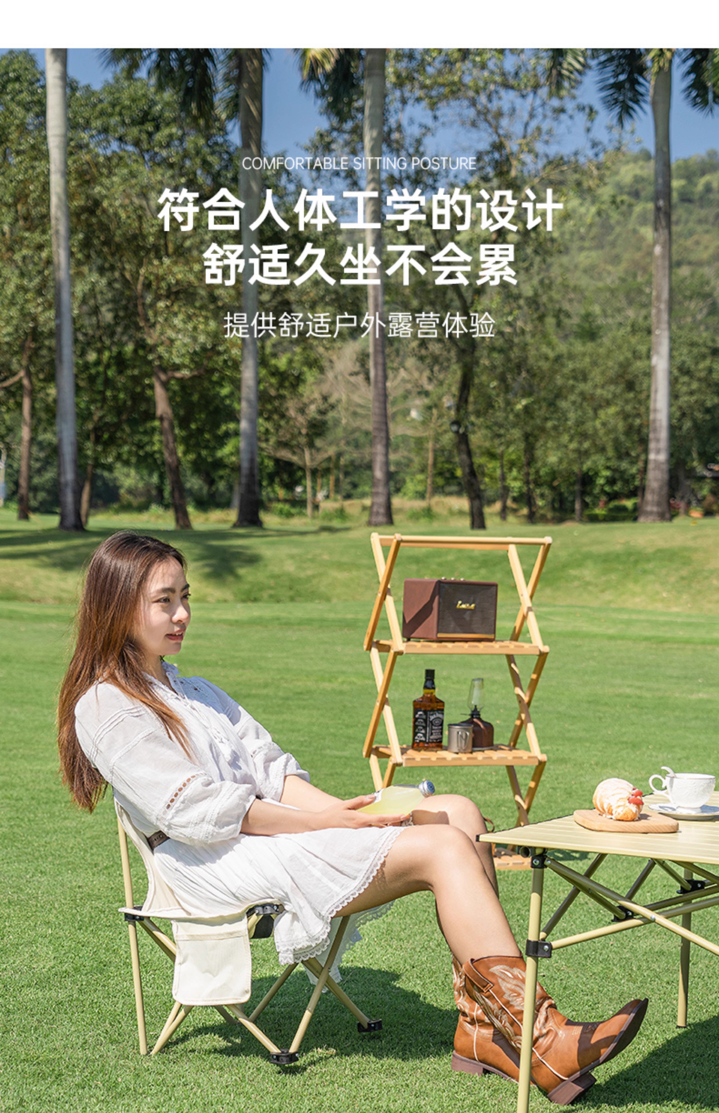 游山然户外露营高背月亮椅便携折叠椅子钓鱼摆摊凳子 白色大号(送收纳袋)