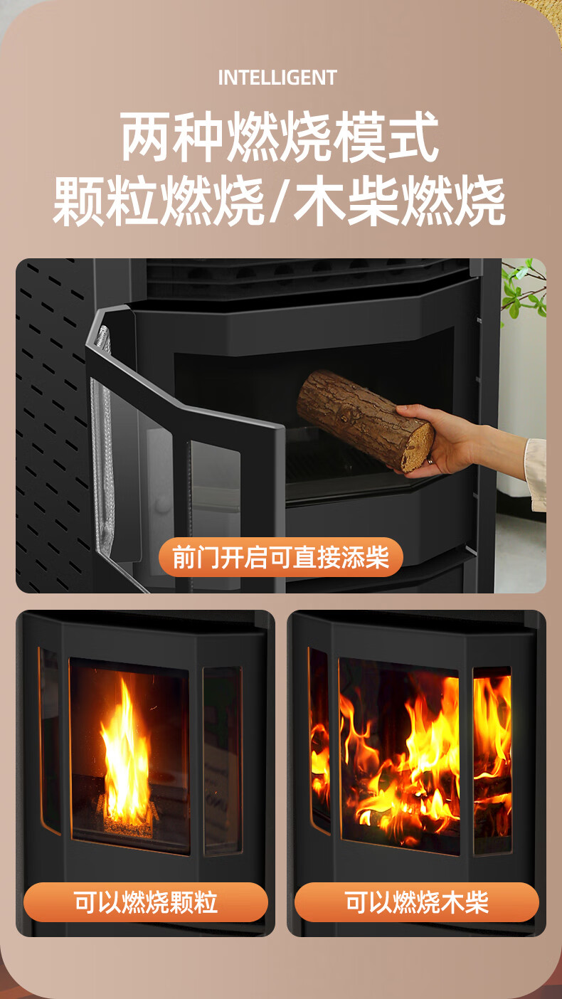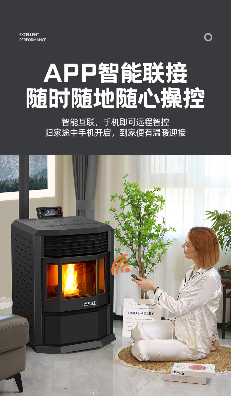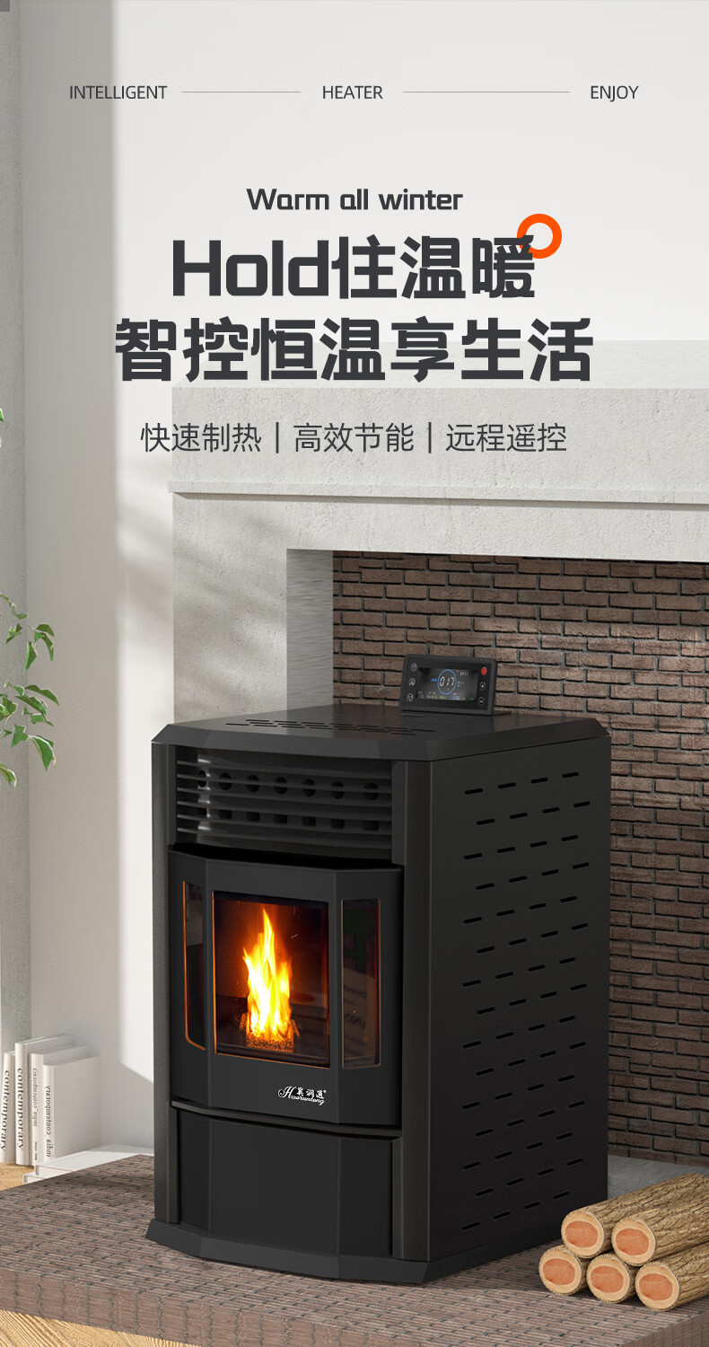 昊润通生物质颗粒取暖炉自建房家用商用室内无烟民宿别墅冬季烧颗粒炉子 智享150P(可烧木柴,手机遥控)