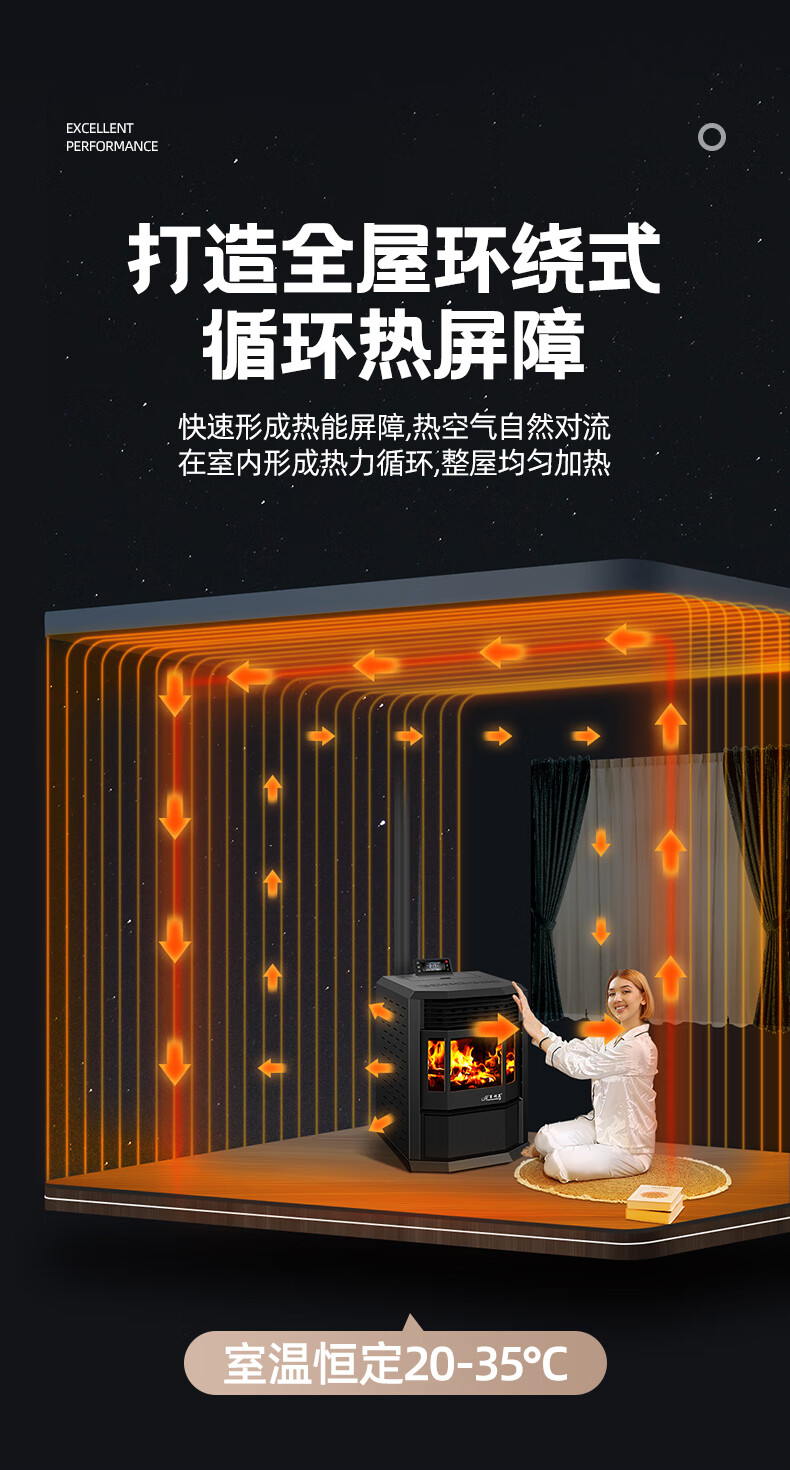 昊润通颗粒取暖炉生物质无烟柴火炉子农村家用室内客厅办公室别墅采暖炉 智焰F-20(30-180㎡)(送烟筒配件)