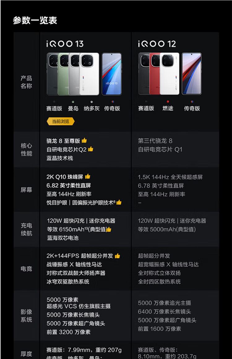 vivo iQOO13骁龙8至尊版自研电竞芯片Q2 2K Q10珠峰屏6150mAh蓝海电池 iQOO13传奇版 12GB+256GB 官方标配+原封未激活+全国联保