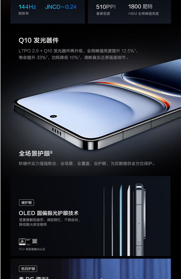 LTPO屏幕;德国莱茵护眼;SGS认证;高频PWM调光