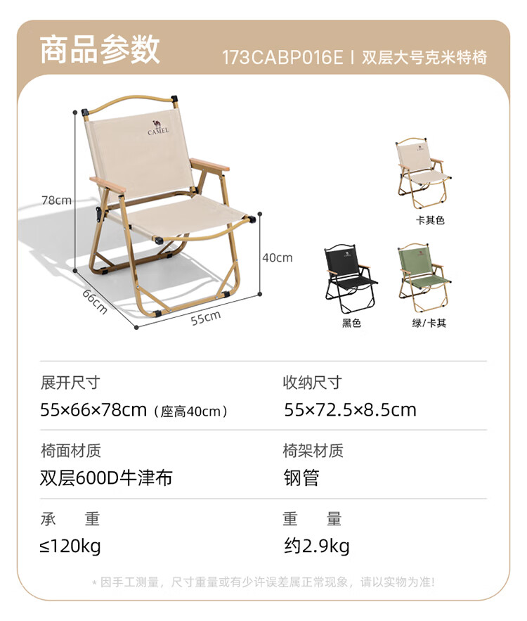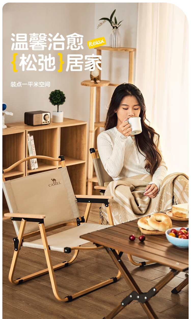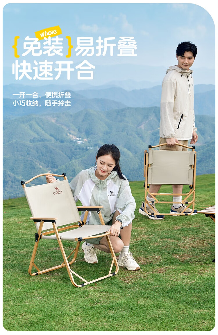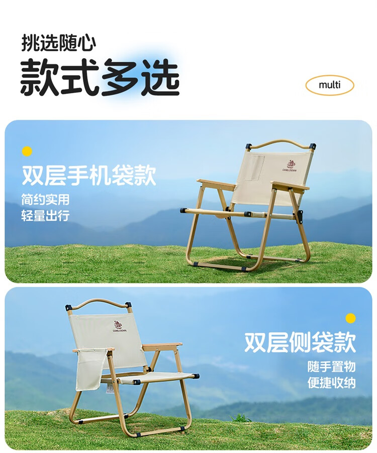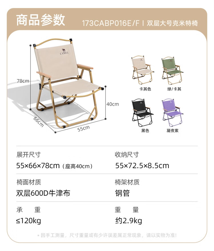 骆驼户外露营便携轻量休闲钓鱼椅子野营装备野餐克米特椅折叠椅子 凝夜紫-173CABP016F