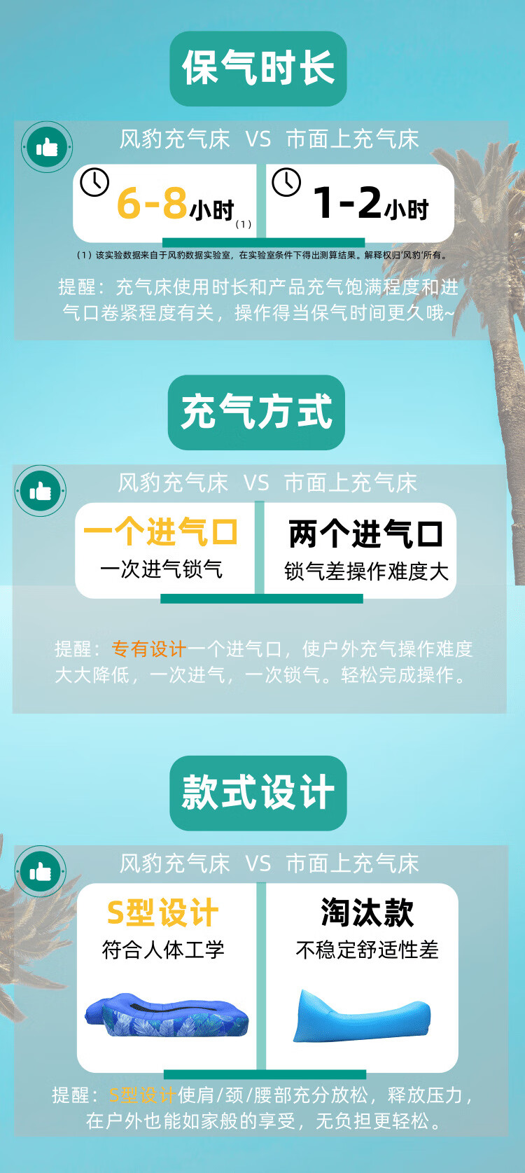 风豹户外充气沙发水陆两用露营单人便携式空气坐垫野营音乐节气床 大漠沙漠+羽毛(有中网) 190*70*55cm