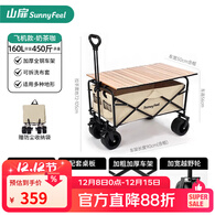 山扉山扉露营车可折叠户外拉车儿童营地小推车买菜拉年货小拖车快递车 飞机款奶咖色+木纹桌板