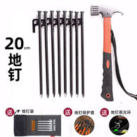 户外加粗地钉野营帐篷钢钉天幕防风绳加长固定营钉地桩营地 20焊黑8根+鹰橘锤+束口袋+帽+圈
