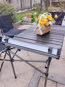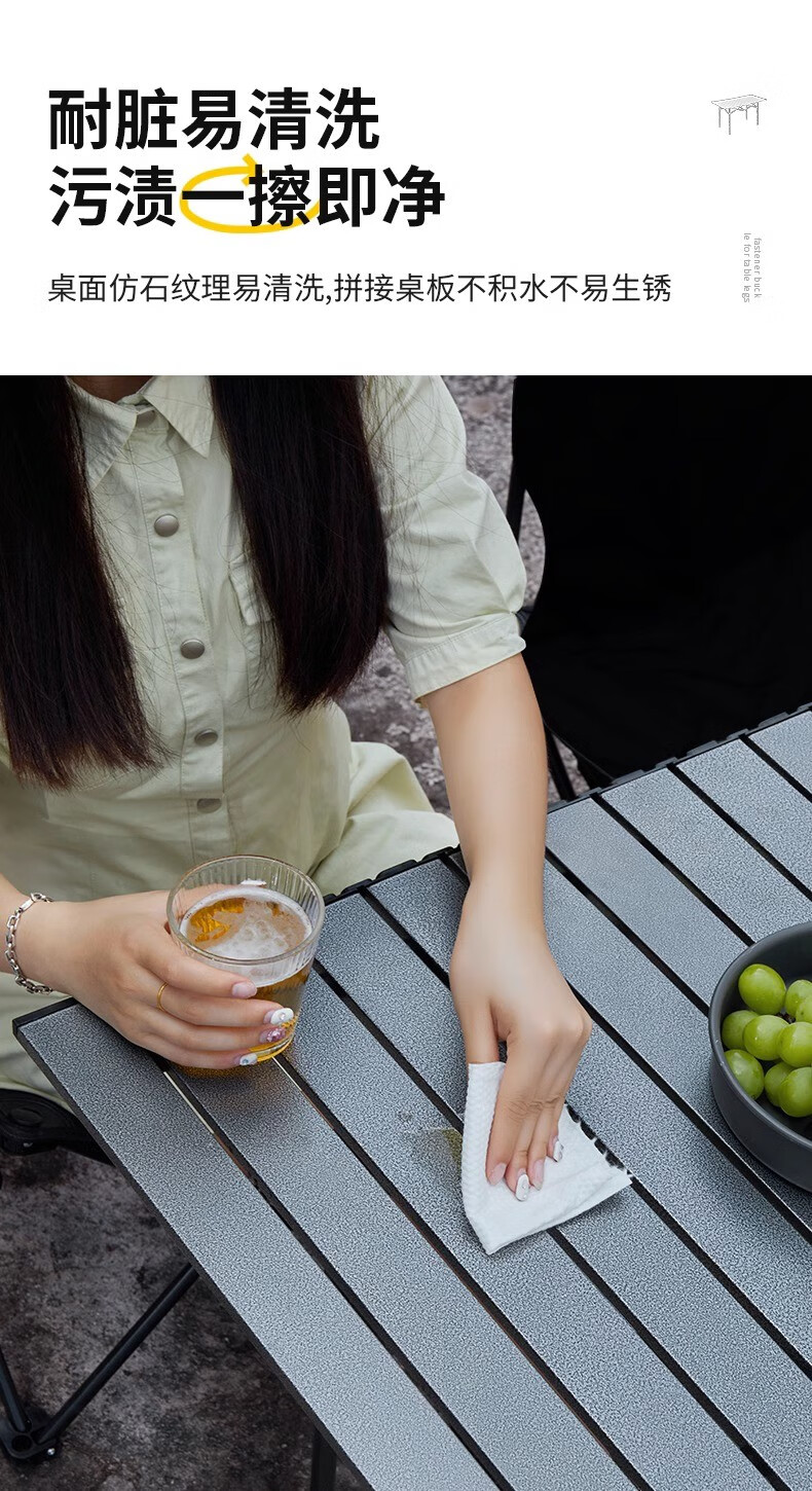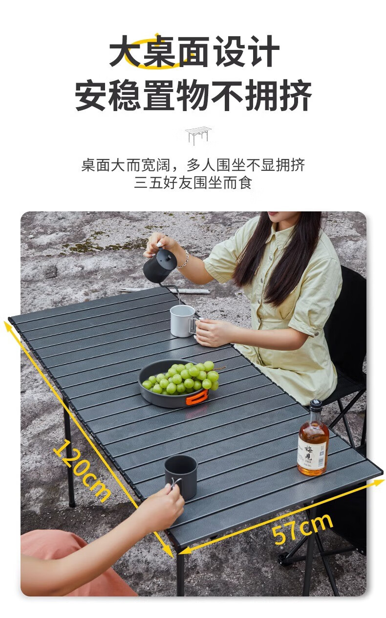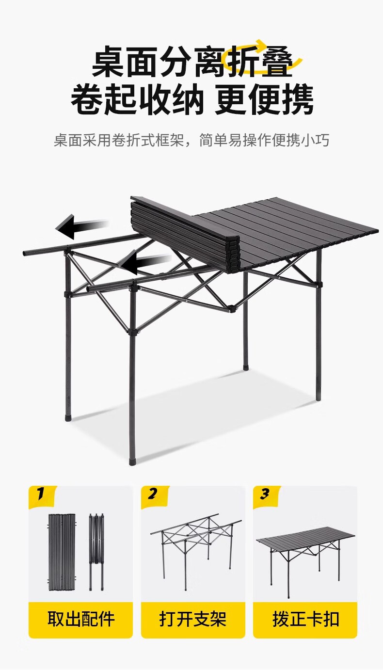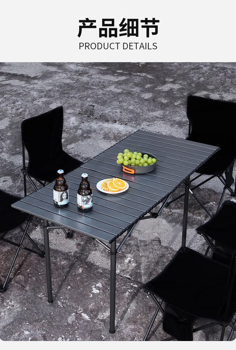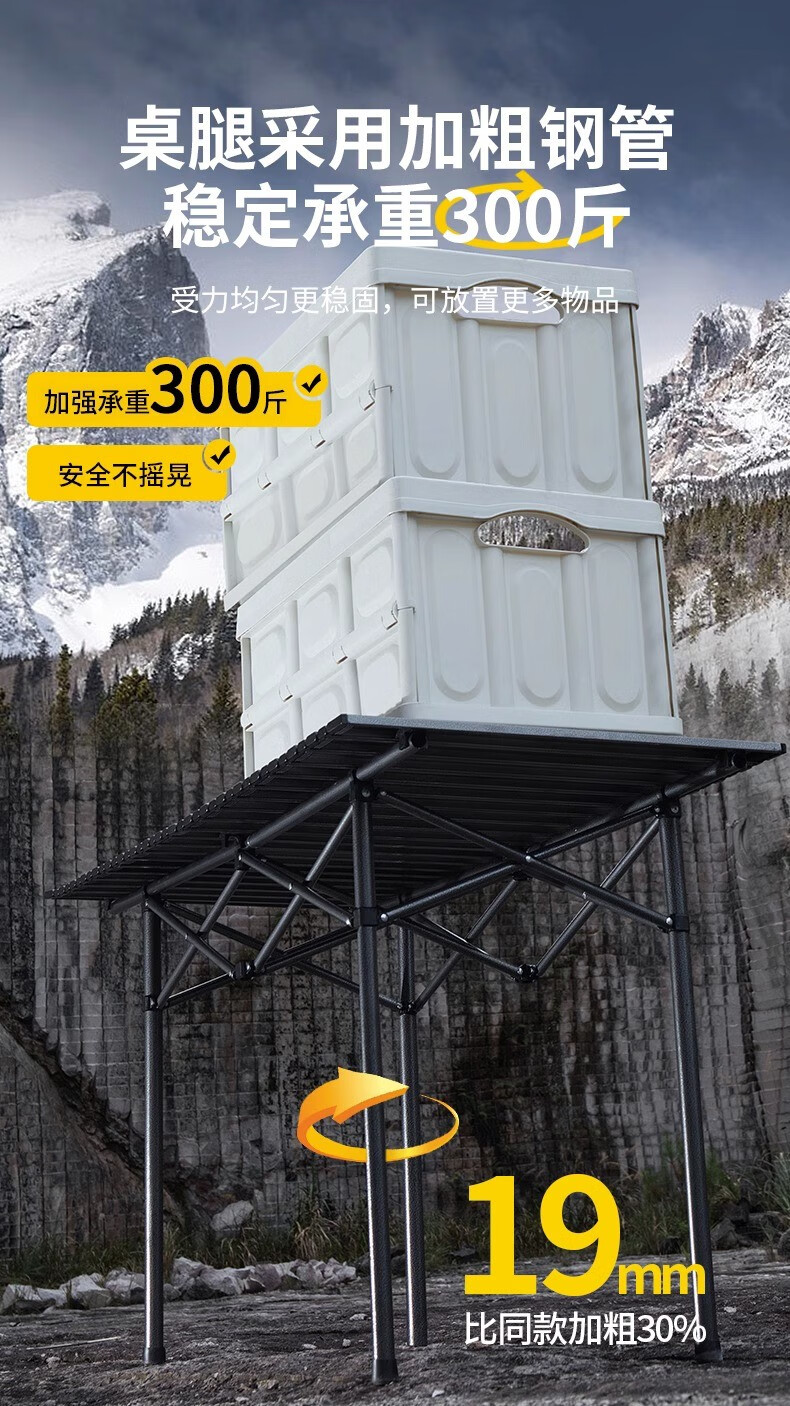 Guide Series户外铝合金折叠桌露营桌便携升降沙滩烧烤桌加宽桌自驾游车载桌 新 加宽金属 木纹黑色