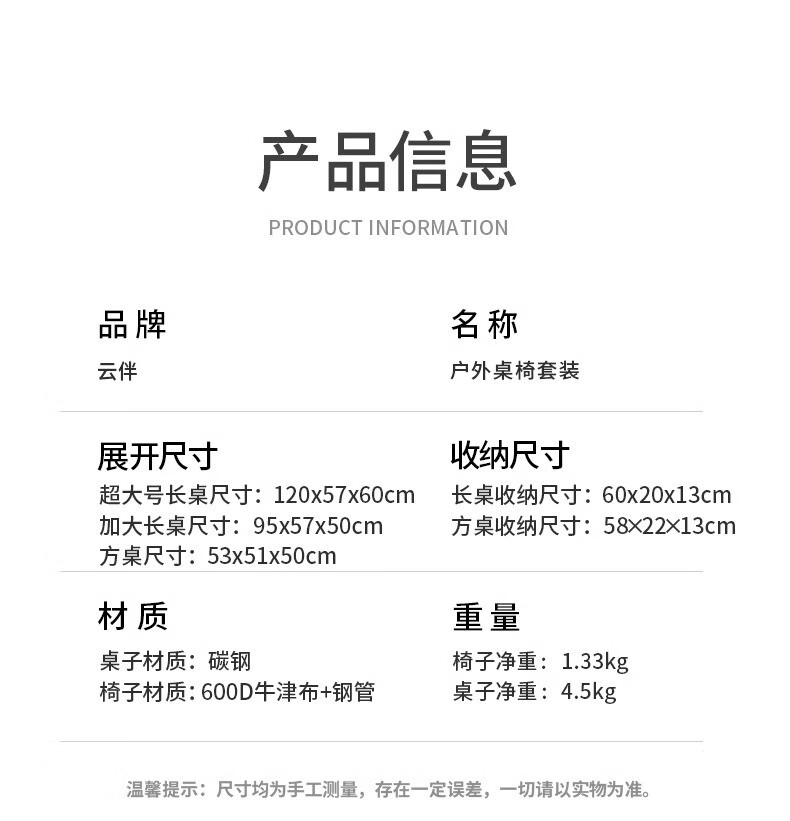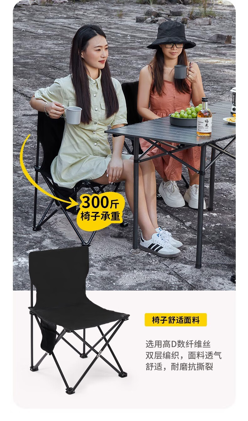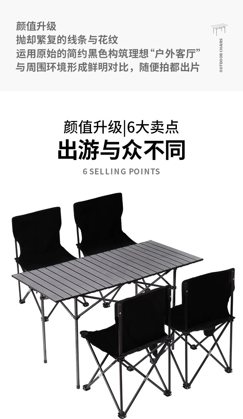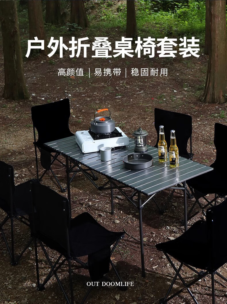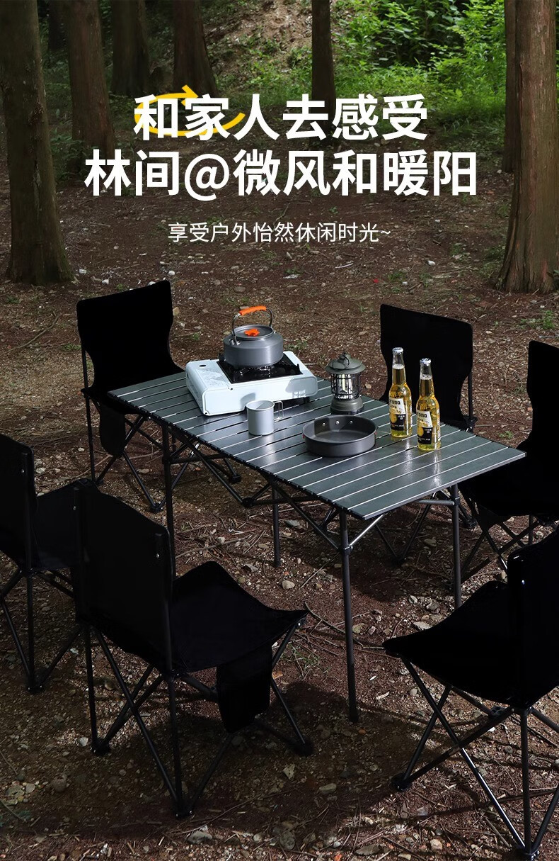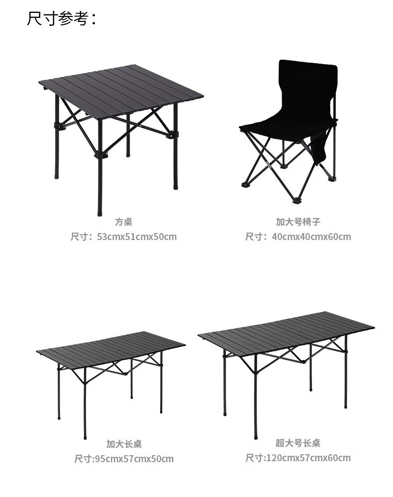 云伴户外折叠桌椅野外露营便携式蛋卷桌摆摊桌子露营装备全套用品套装 【方桌50cm】黑色+收纳包