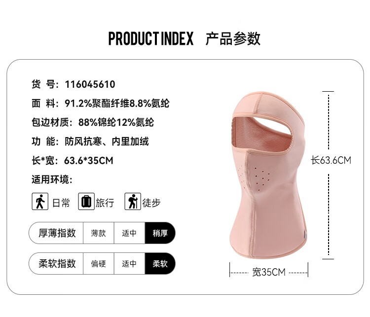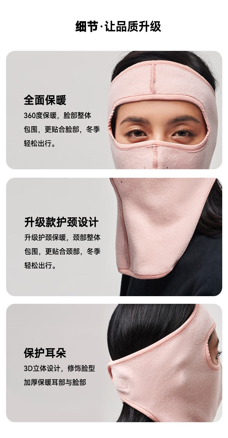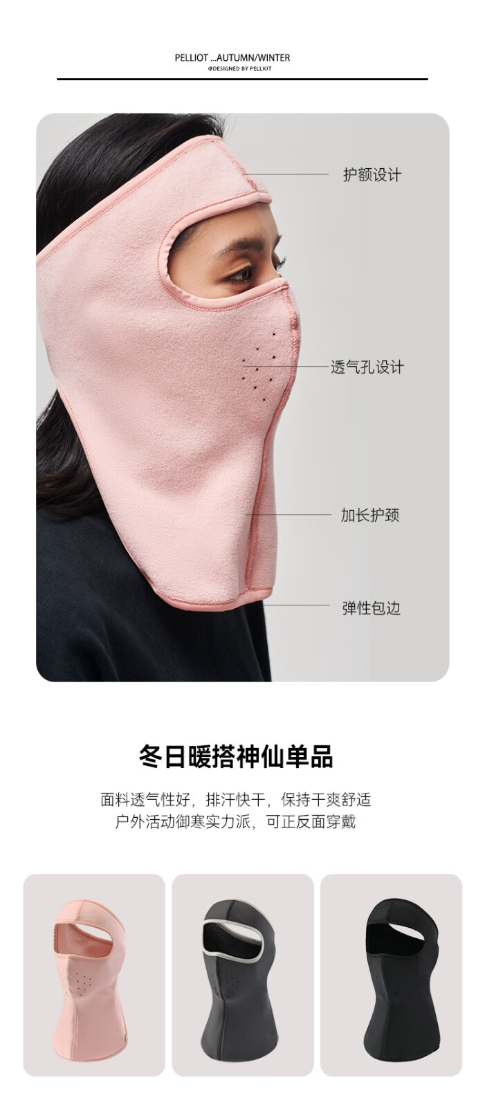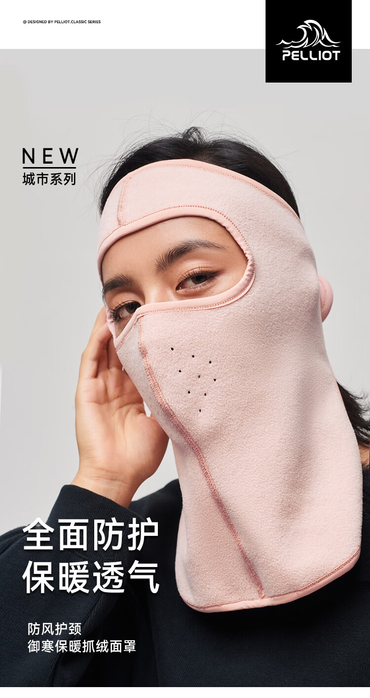 伯希和(Pelliot)透气抓绒脖套秋冬户外骑行面罩防风防寒保暖装备 高街粉 均码