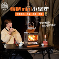荒野猎人户外小壁炉露营帐篷围炉煮茶室内桌面取暖烧水观火柴火炉 鲲鹏mini小壁炉--套餐二