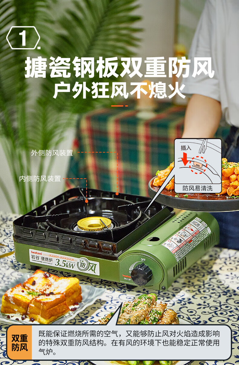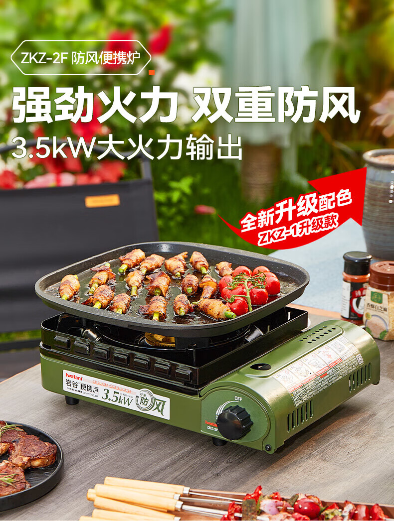 岩谷(Iwatani)防风卡式炉便携式烧烤户外炉具烤盘套装火锅露营野餐卡磁丁烷燃气 岩谷 ZKZ-2F防风款