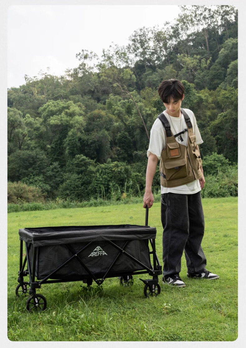 AREFFA户外露营车折叠推车野餐营地车大容量旅行野营装备四向手拉车拖车 150L 有刹车 岩石灰露营车