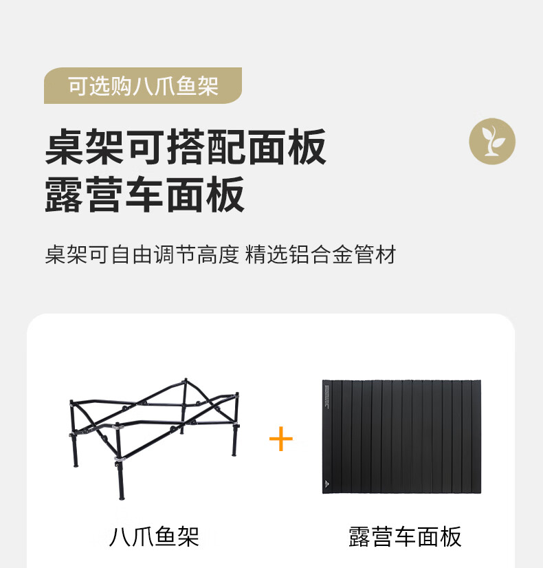 北欢bavay户外露营推车聚拢型营地拖车野营餐拉车F01 420L -加长款米色-桌板-三件套