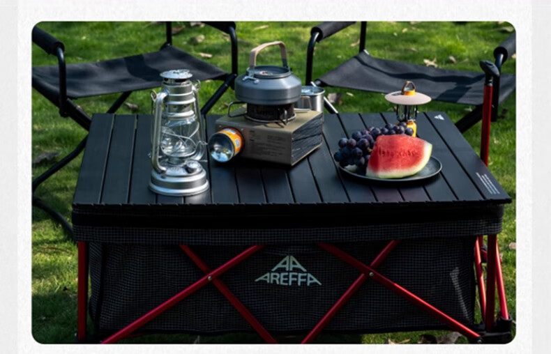 AREFFAAreffa户外露营轻量化桌子便携式野餐桌蛋卷桌超轻铝合金桌子黑色 黑色轻巧IGT台