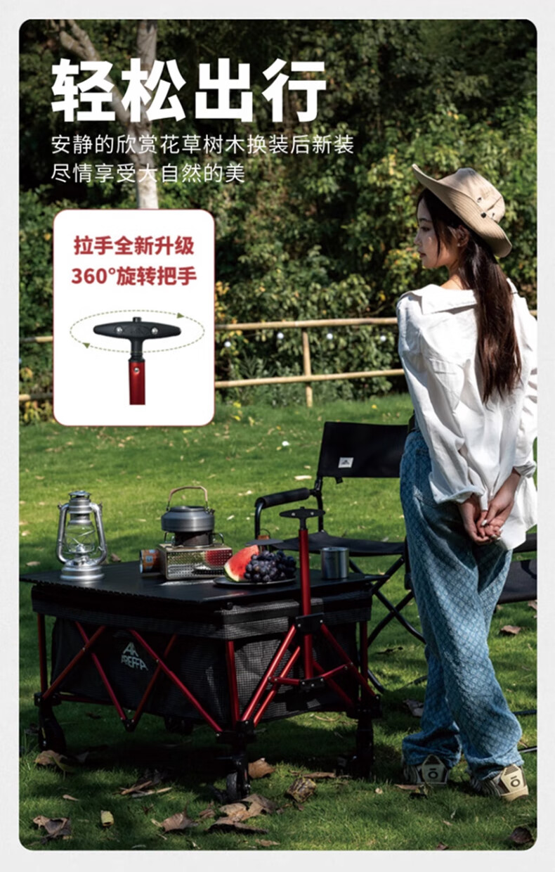 AREFFA户外露营车大号折叠超大便携式野餐旅游野营大容量250L手拉营地车 【岩石灰】露营车 150L 有刹车