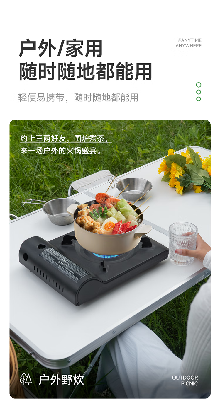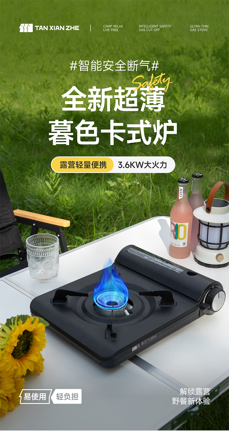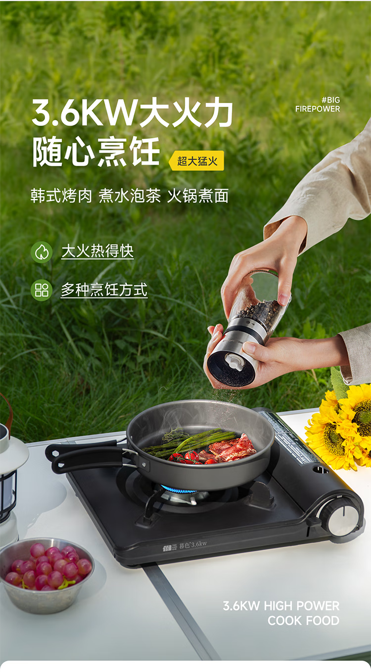 它颜值也高,简约设计很耐看,放在桌上很搭。而且操作简单,阀门调节轻松,新手小白也能轻松上手。重量也不沉,携带方便,收纳起来不占地方。安全方面也有保障,有熄火保护装置。