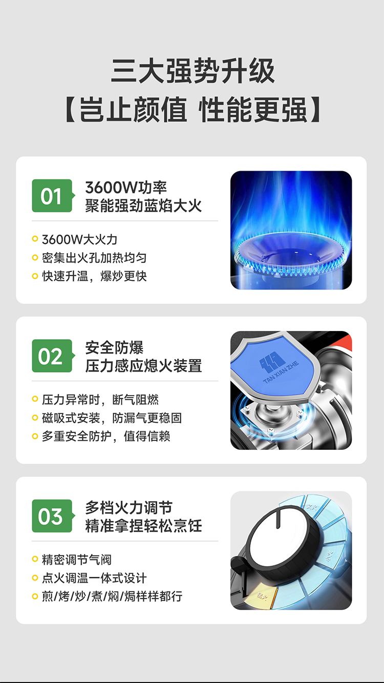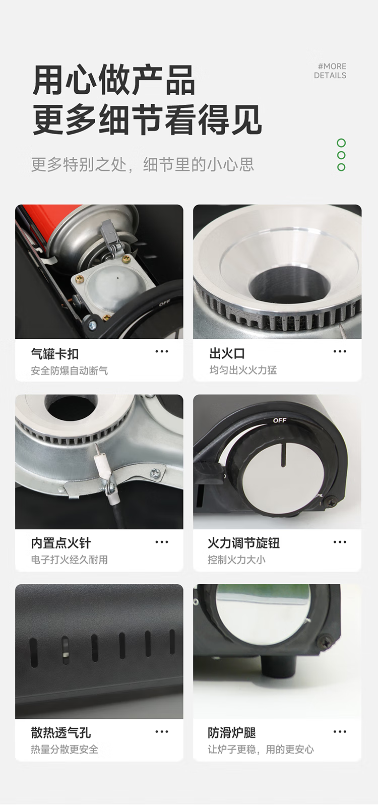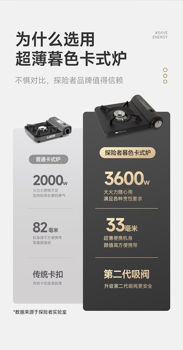 它颜值也高,简约设计很耐看,放在桌上很搭。而且操作简单,阀门调节轻松,新手小白也能轻松上手。重量也不沉,携带方便,收纳起来不占地方。安全方面也有保障,有熄火保护装置。