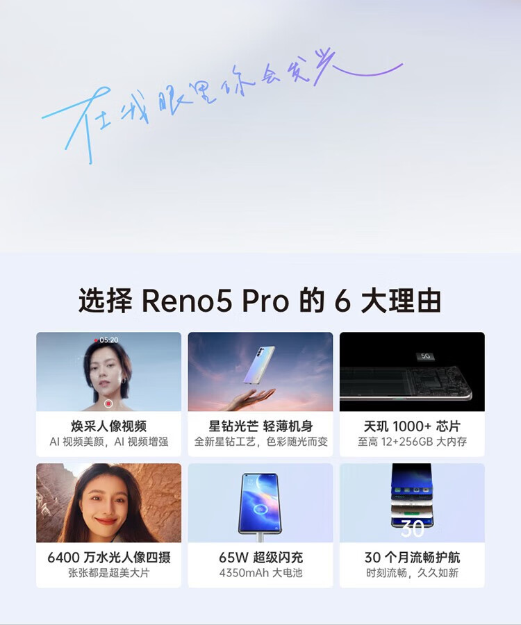 OPPO Reno5 Pro 5G手机6400万人像四摄 65W闪充 reno5pro A5-锆石黑 8GB+128GB