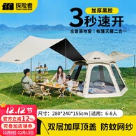 探险者帐篷户外露营便携天幕帐篷速开加厚黑胶防雨防晒全遮光野营装备 黑胶六面落地6-8人【帐篷+天幕】