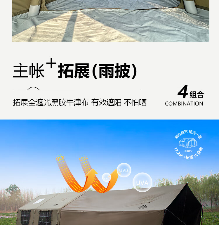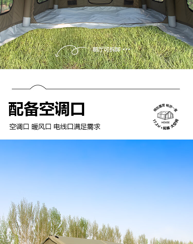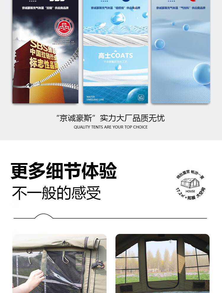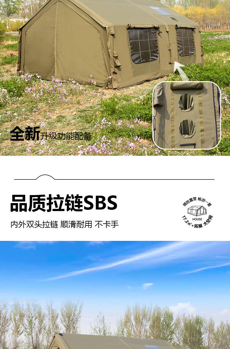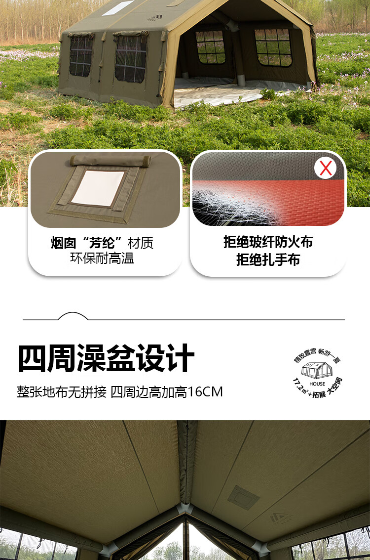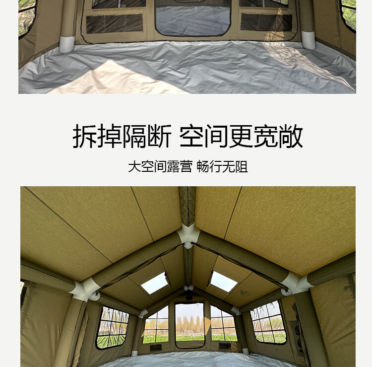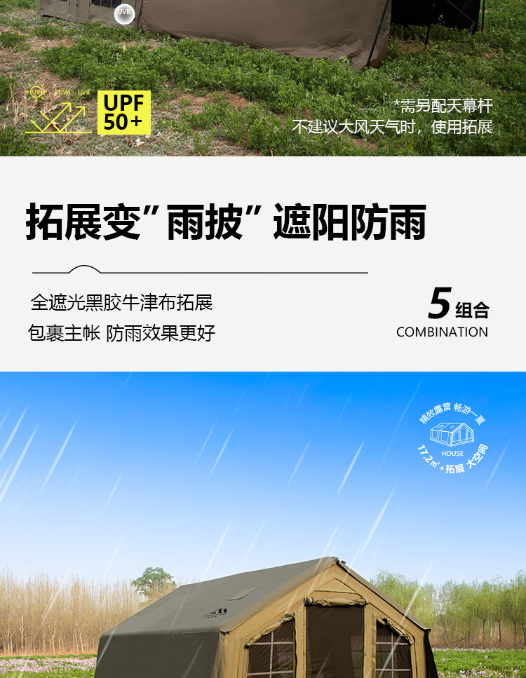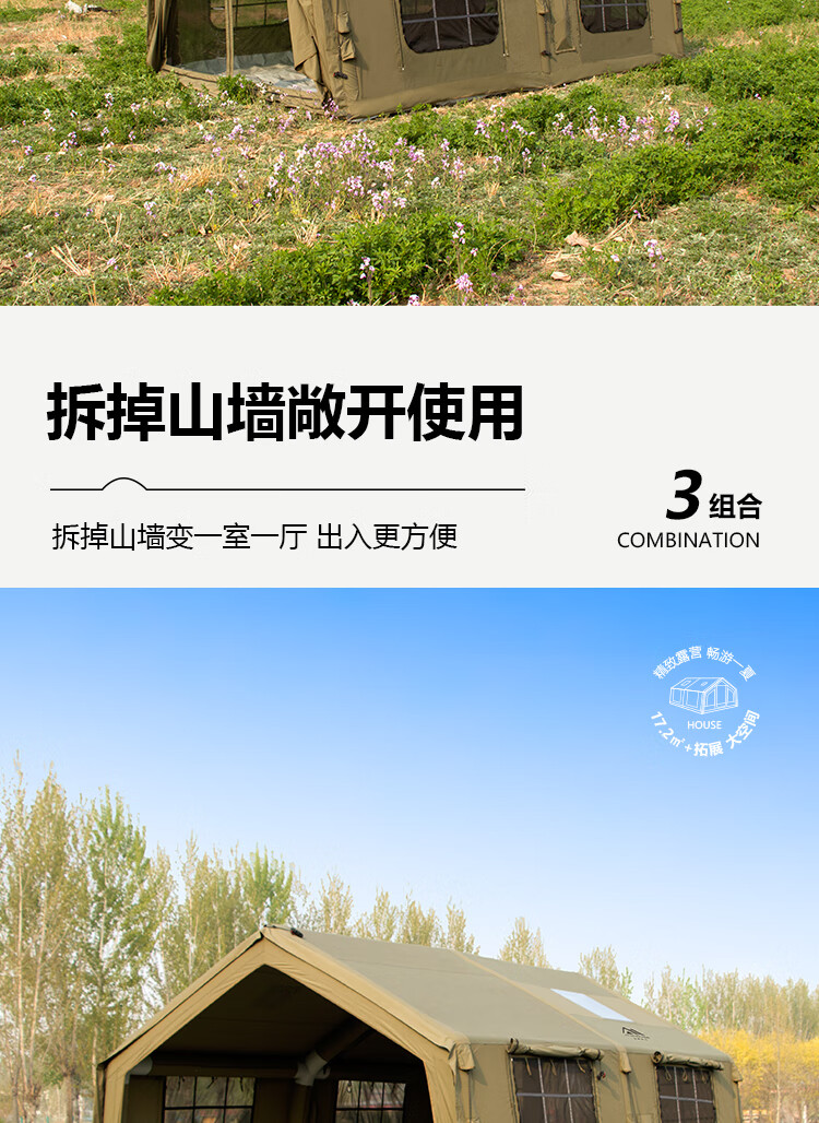京诚豪斯JcHouse新款17.2㎡棉布充气帐篷17.2平户外露营长搭过夜屋脊 豪斯17.2平军绿主帐+黑胶天幕