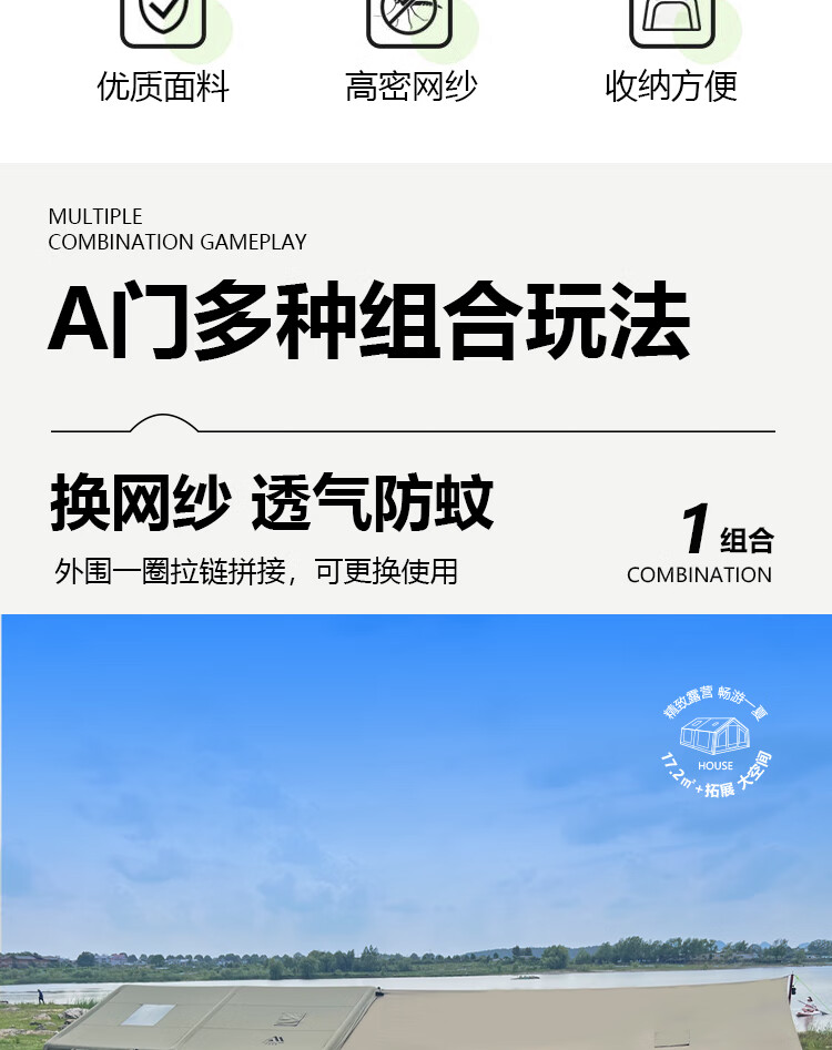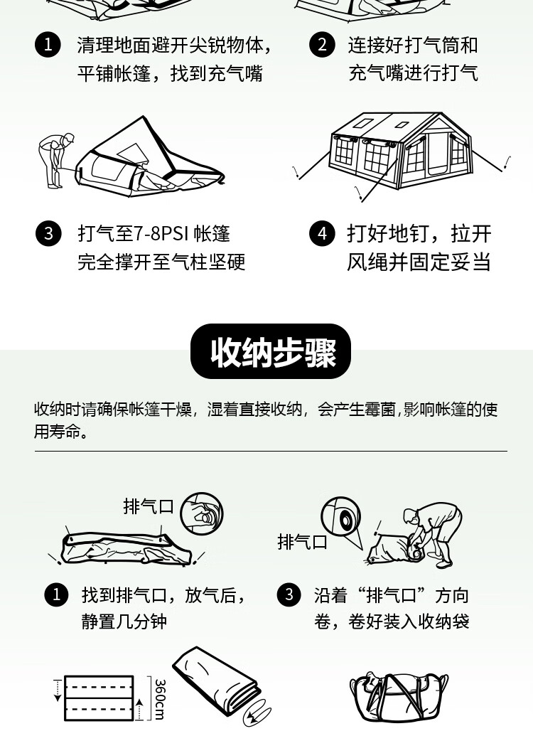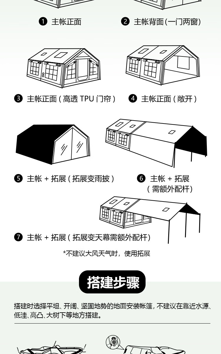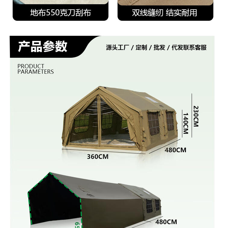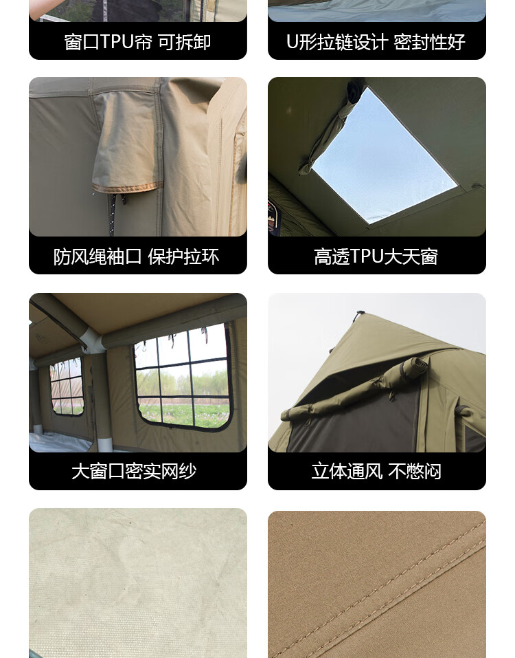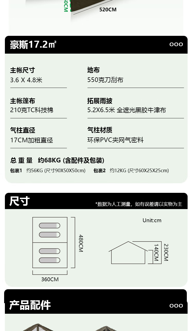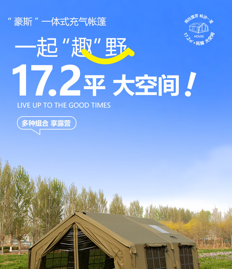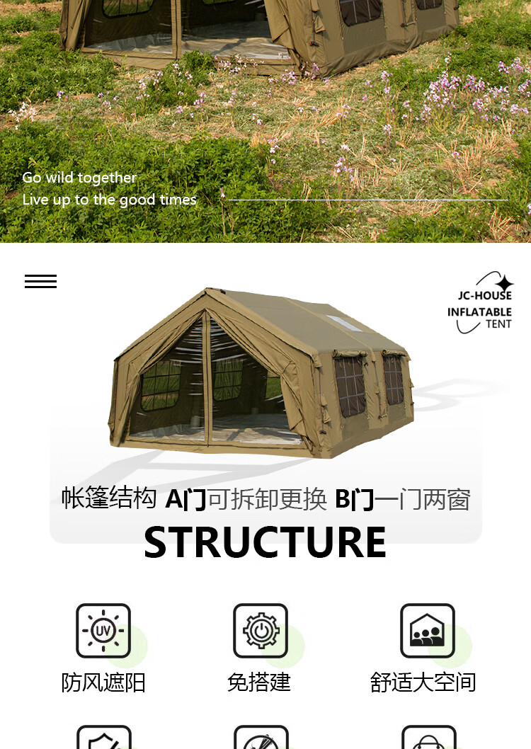 京诚豪斯JcHouse新款17.2㎡棉布充气帐篷17.2平户外露营长搭过夜屋脊 豪斯17.2平军绿主帐+黑胶天幕