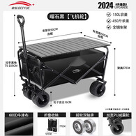 北岳露营车户外可折叠推车超大营地车野餐车拖车野营手拉杆摆摊小推车 桌板套餐-飞机轮曜石黑+曜黑桌板