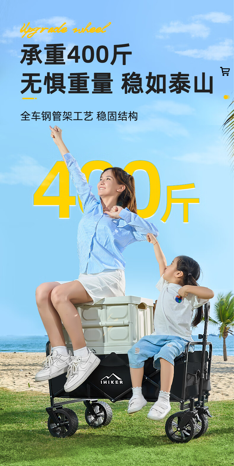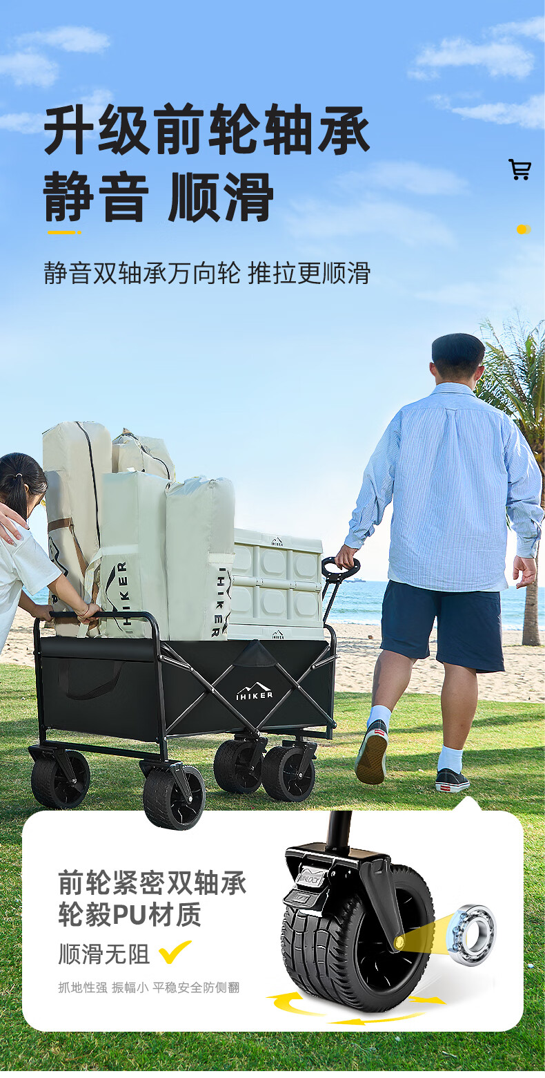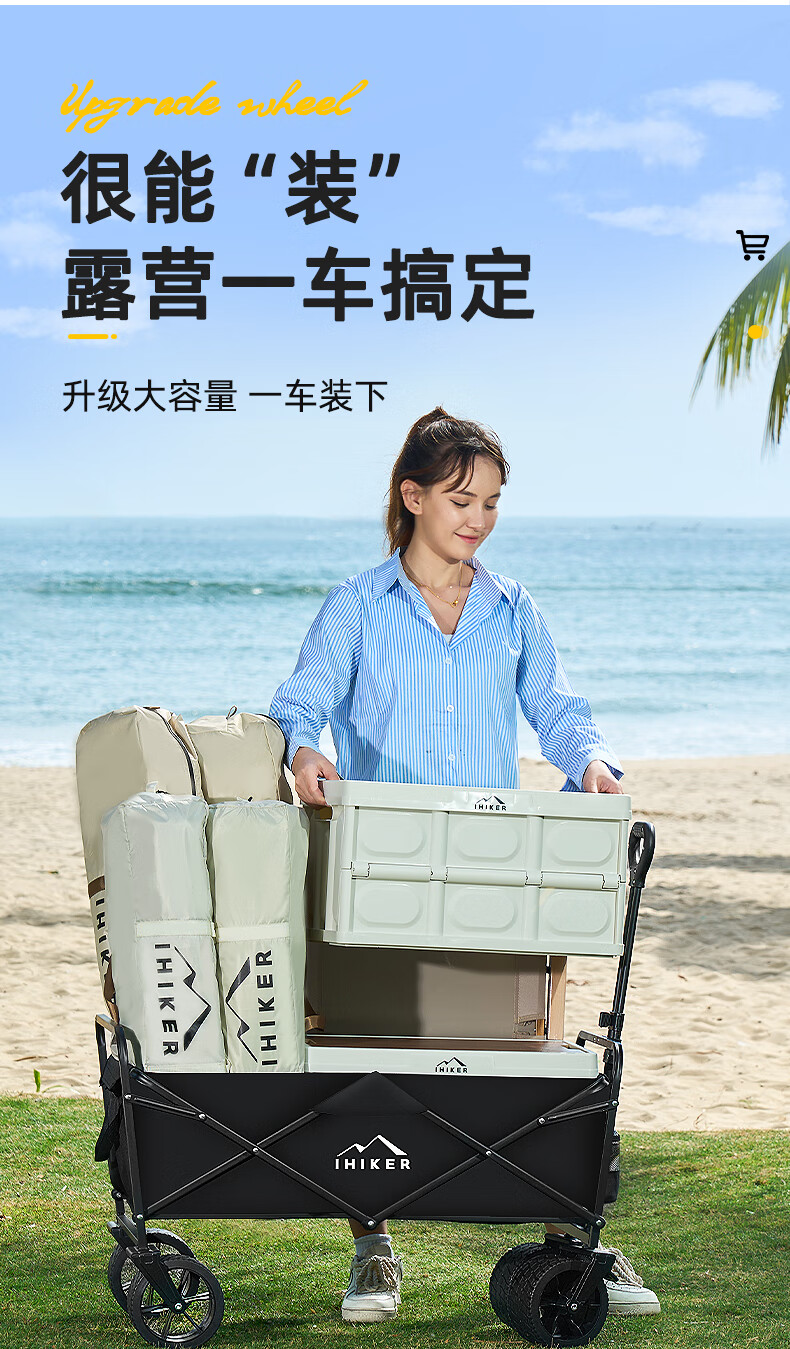 爱山客露营车推车营地拖车户外折叠超大 8寸实心轮-奶油白