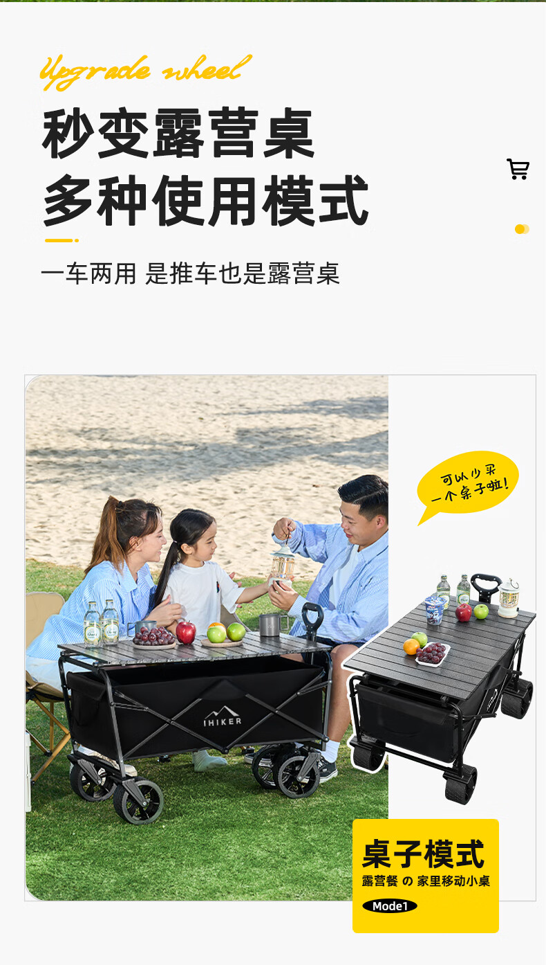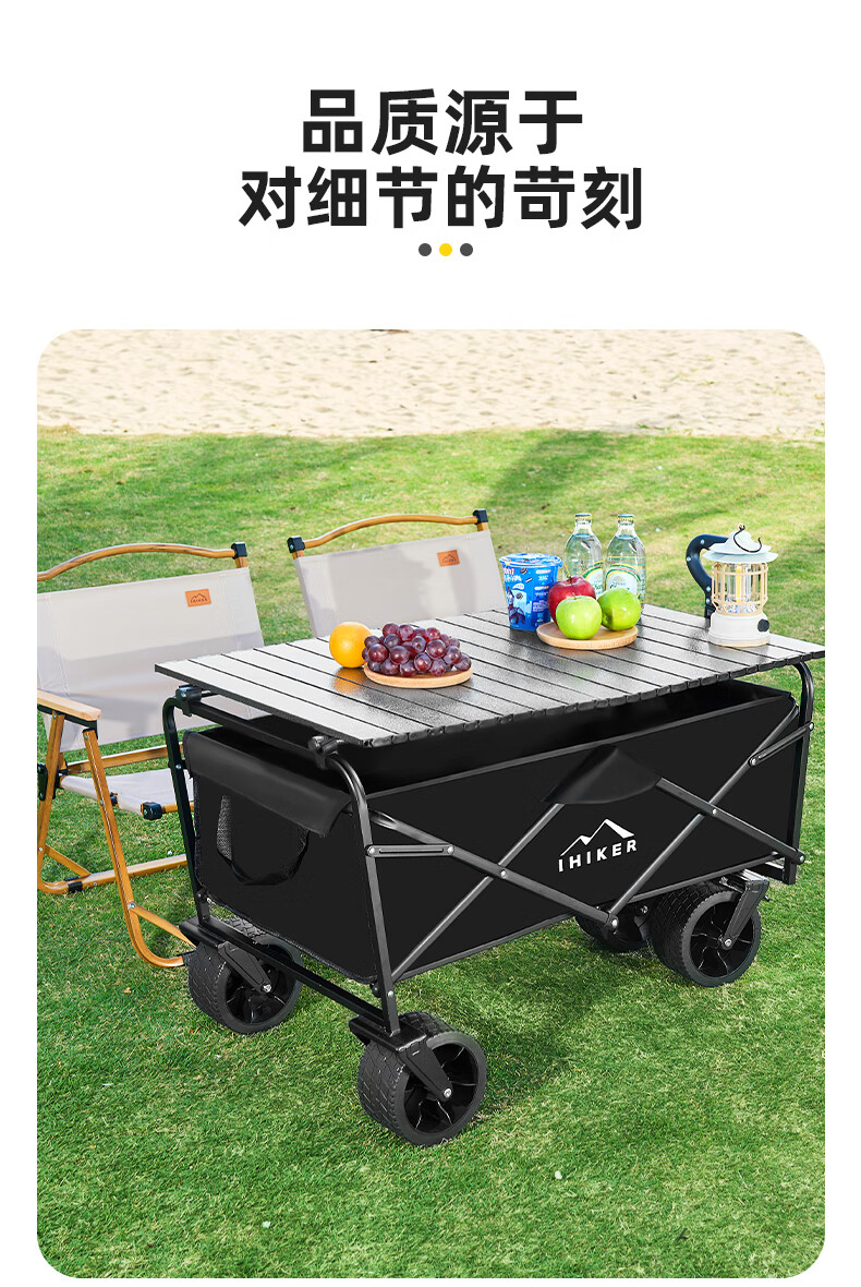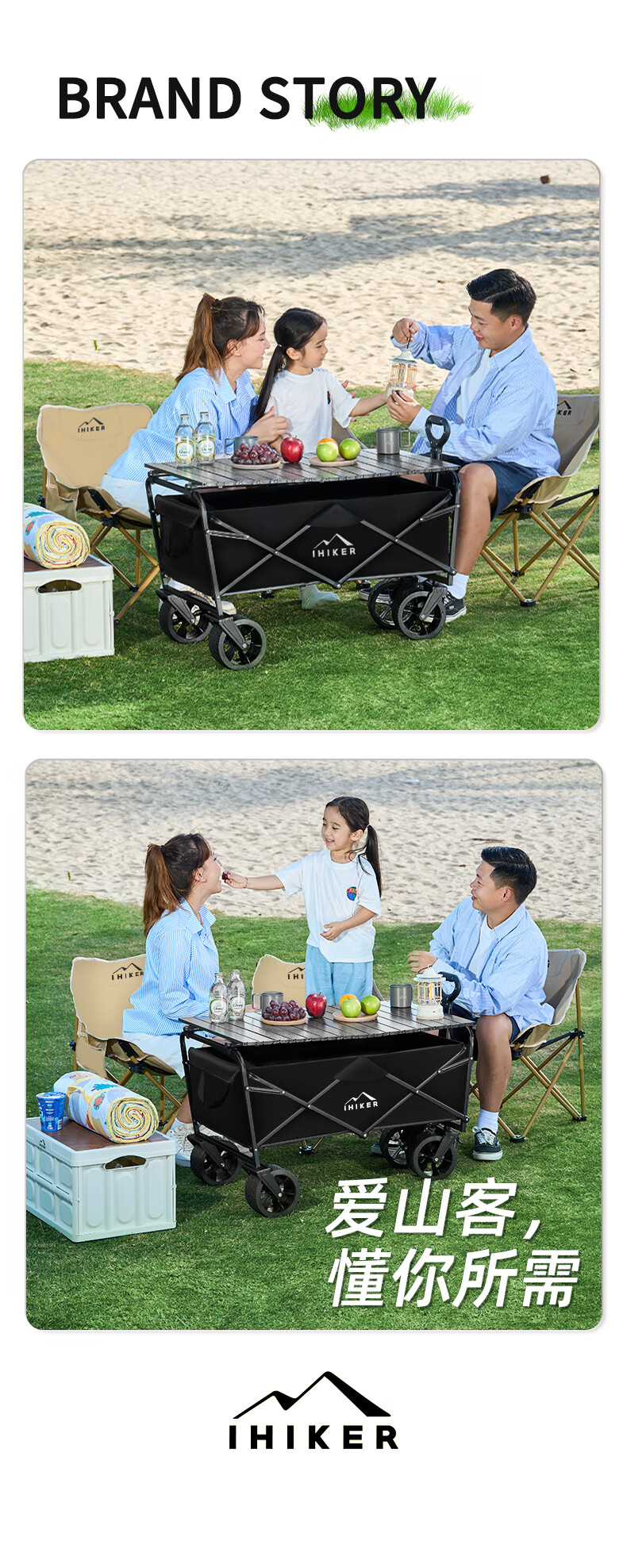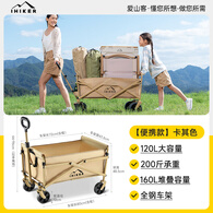 爱山客露营车户外折叠推车野营手推车露营野餐装备拖车手拉车桌板 160L 卡其色【实心万向轮】 全钢车架