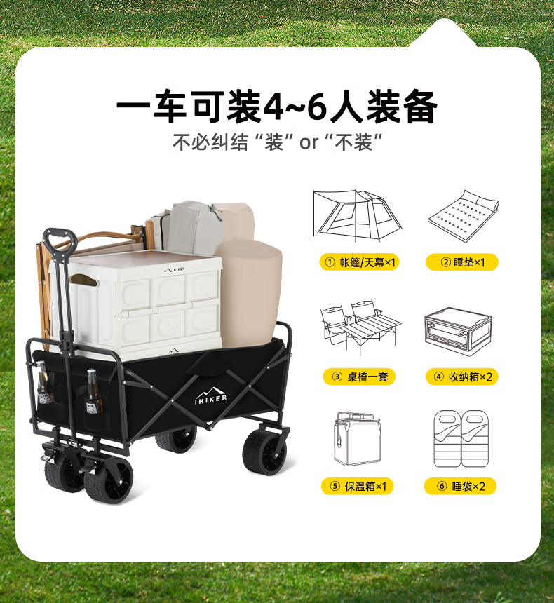 CAMEL户外露营营地车买菜车溜娃车遛狗车野餐便携可折叠拖车摆摊拉车