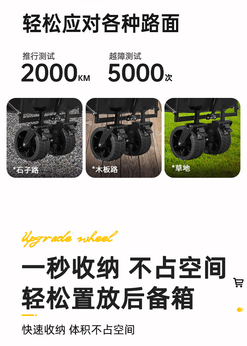 云伴户外露营折叠便携小推车野餐摆摊可折叠手推营地拖车拉杆桌板车 轻盈5寸卡其-12cm万向轮