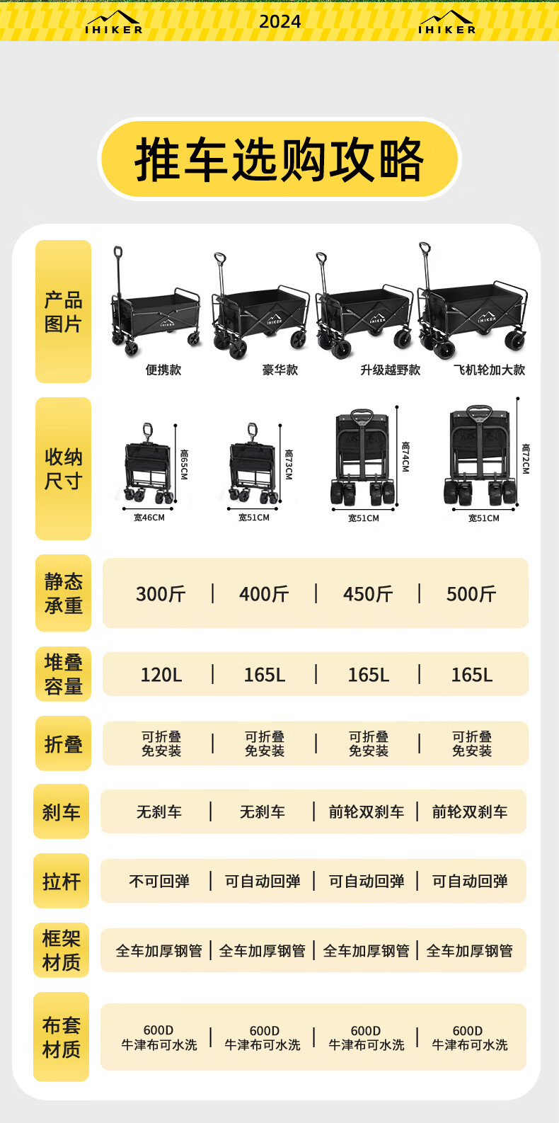 疆屿户外露营推车露营车营地车摆摊折叠野营拖车野餐车儿童可躺旅行车 卡其【轻便购物车】5寸实心轮