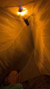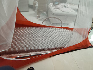 防水效果:半夜下了暴雨,防水效果嘎嘎好,记得一定扎帐篷的时候拉直钉牢,不然就会被雨从地上溅起来的时候头伸出去重新扎门厅