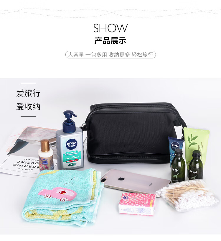 东西收到了。加长版的。容量挺大的。平时的洗漱用品。完全可以装呐。方便又实用。