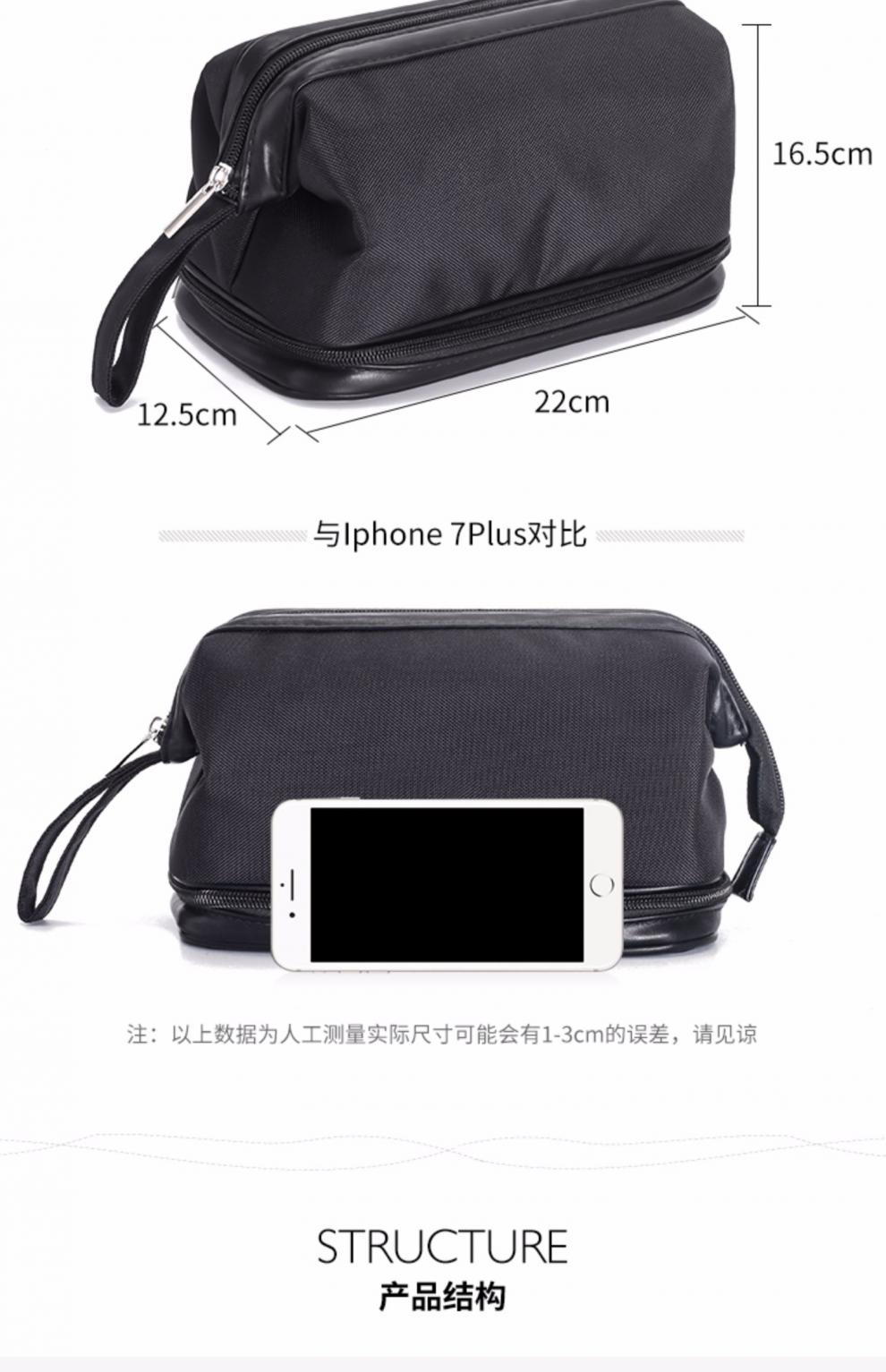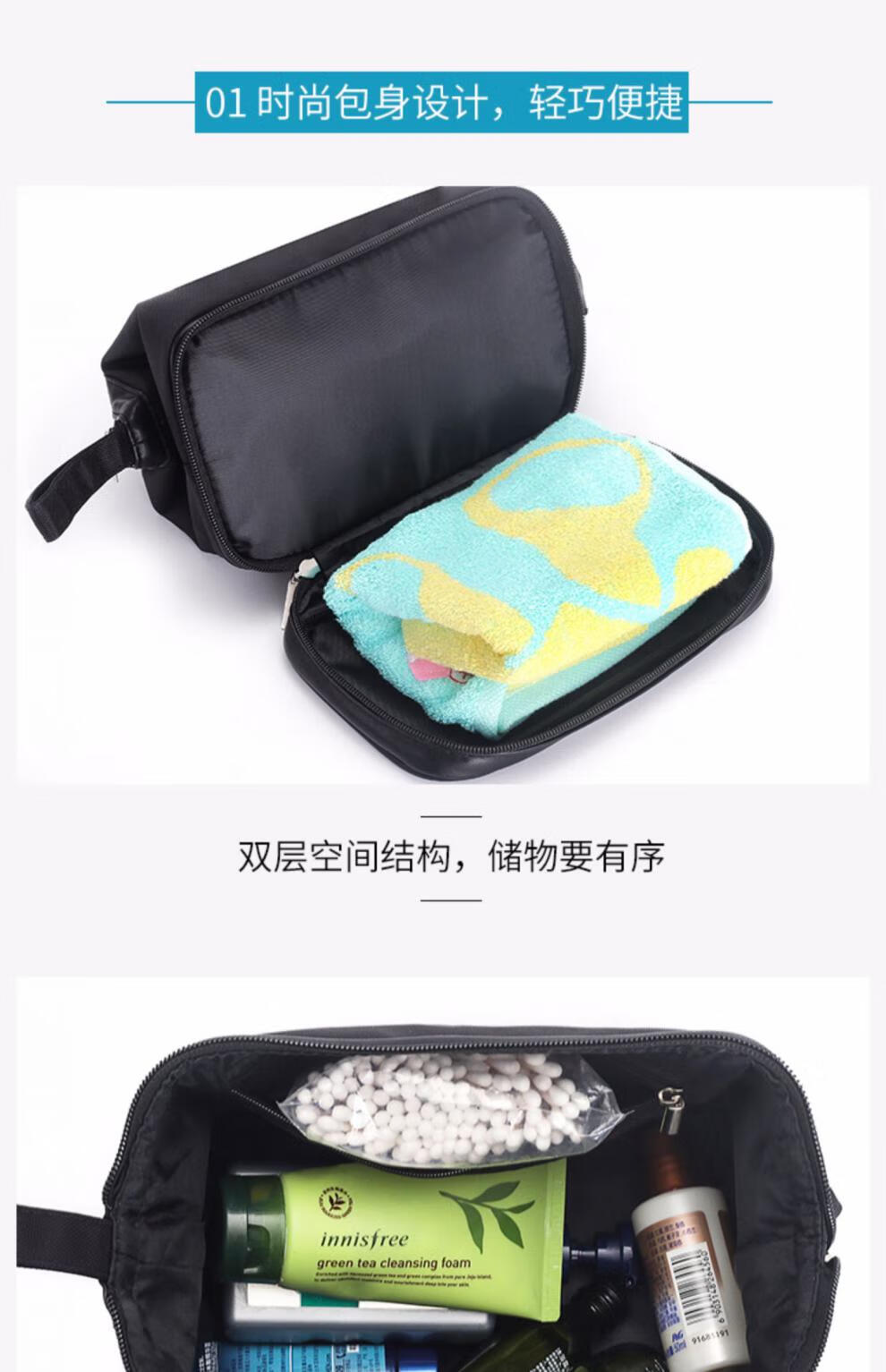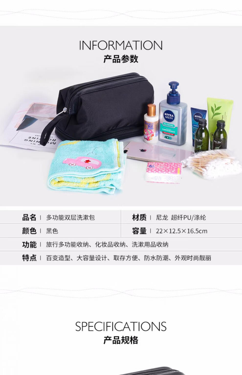 博纳云男士洗漱包大容量健身旅行便携化妆品洗漱收纳包干湿分离防水女 黑色普通版