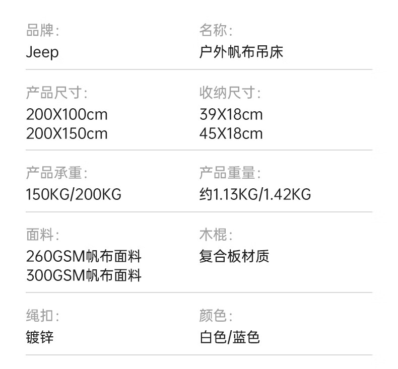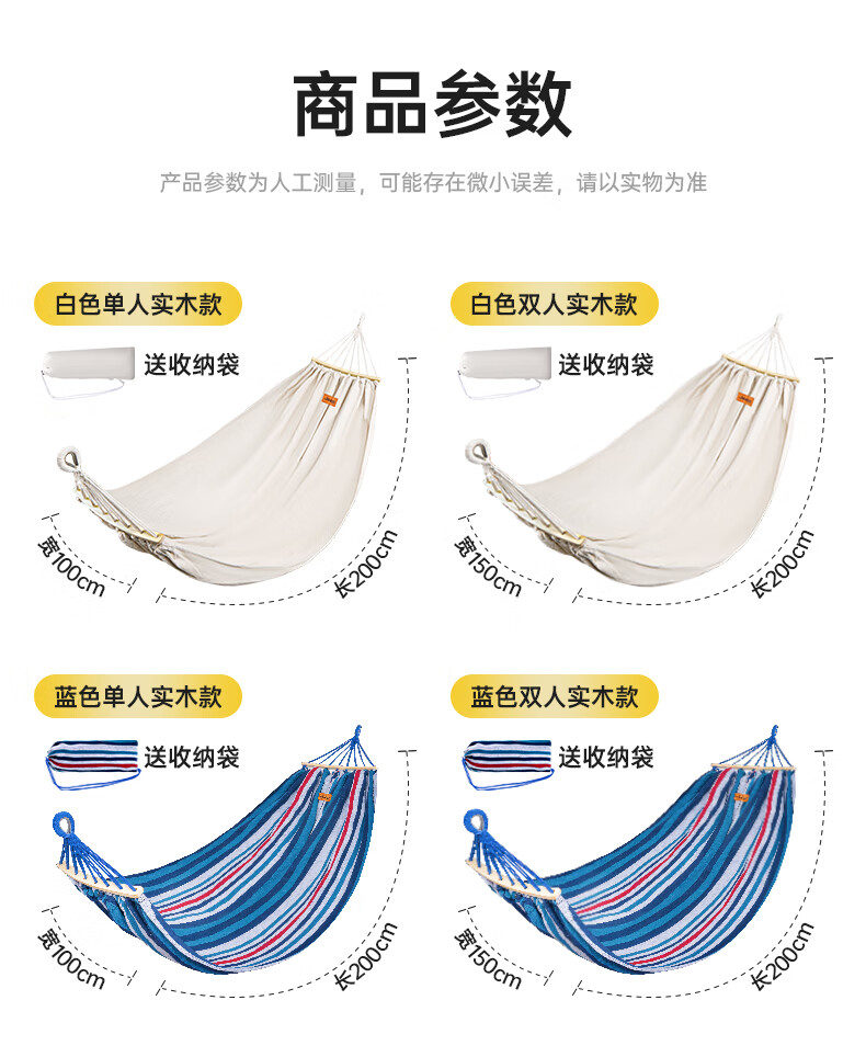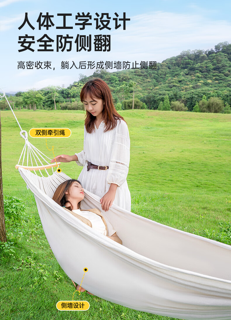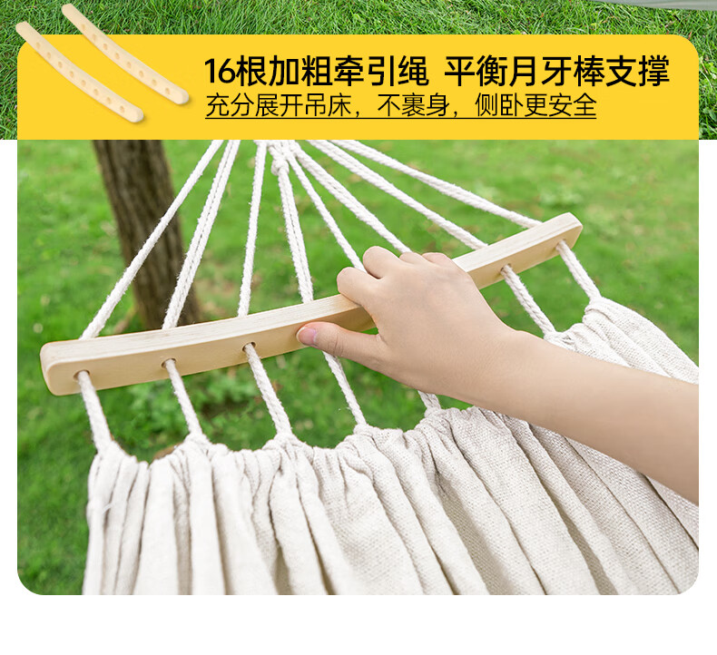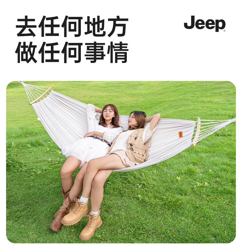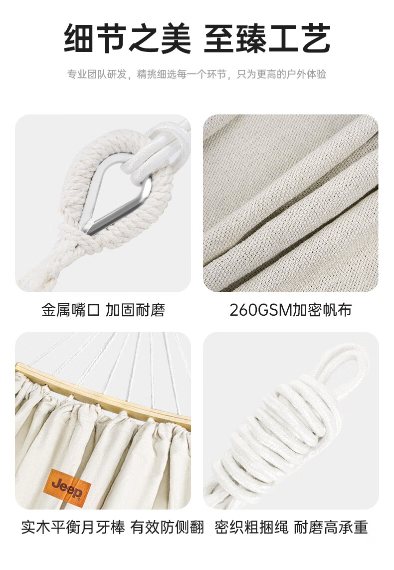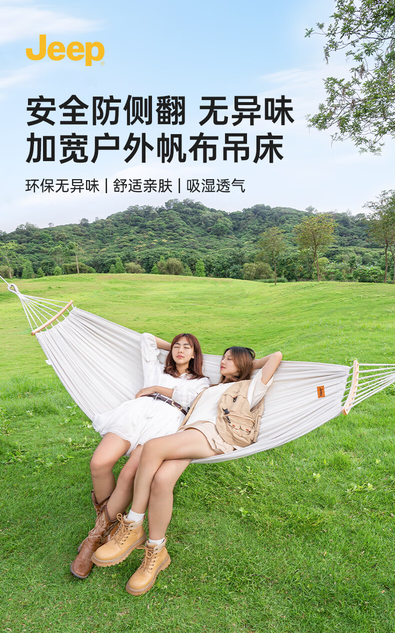 JEEP户外露营休闲加厚加宽帆布懒人吊床室内单双人吊床弯木防侧翻吊床 蓝色单人