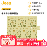 JEEP野餐垫野外郊游防潮垫子户外折叠便携防水加厚野炊地垫牛津布垫子 汽车印花款卡其1.5M