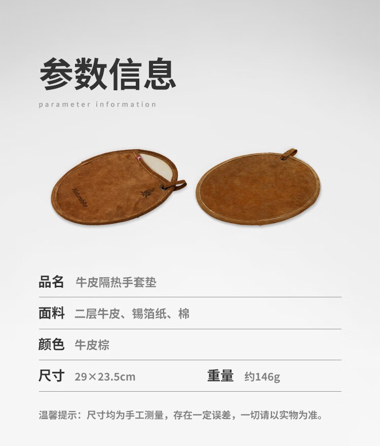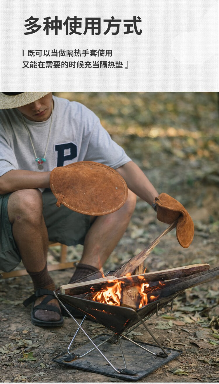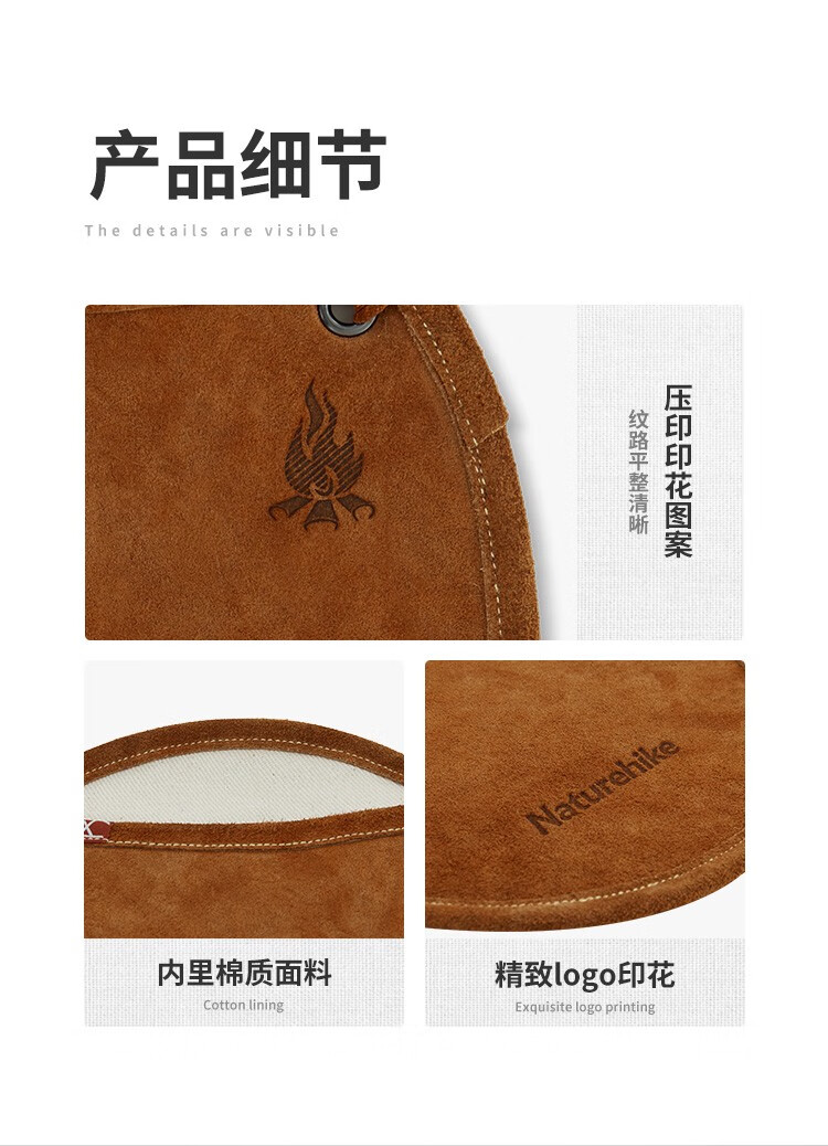 Naturehike挪客牛皮隔热手套垫 户外露营野营防烫手套野炊隔热垫 牛皮棕(单个装)
