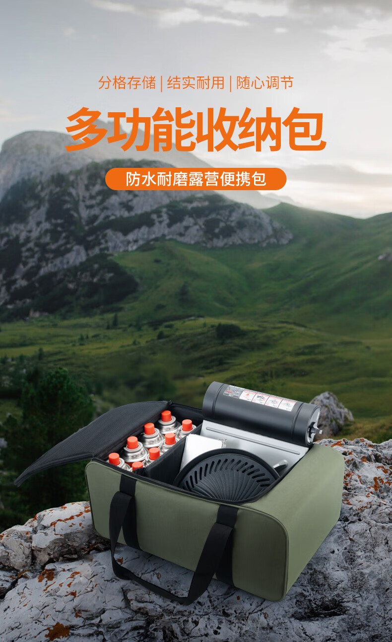 原始人户外收纳包露营装备收纳袋帐篷卡式炉防水气罐餐具野餐餐具杂物包 焰丽卡式炉收纳包
