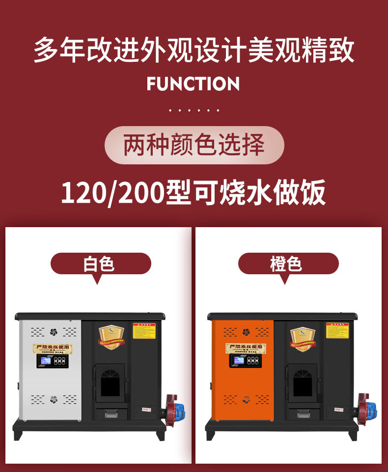丰强鸿生物质颗粒取暖炉带暖气片水暖家用地暖智能全自动水暖家用室内 120型水暖炉【炊事取暖两用】