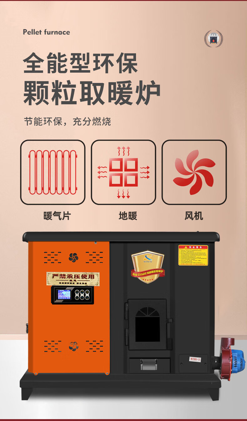 能师傅生物质颗粒取暖炉暖气片地暖供暖全自动水暖家用热水采暖锅炉环保 【水暖-接气片/地暖】150型