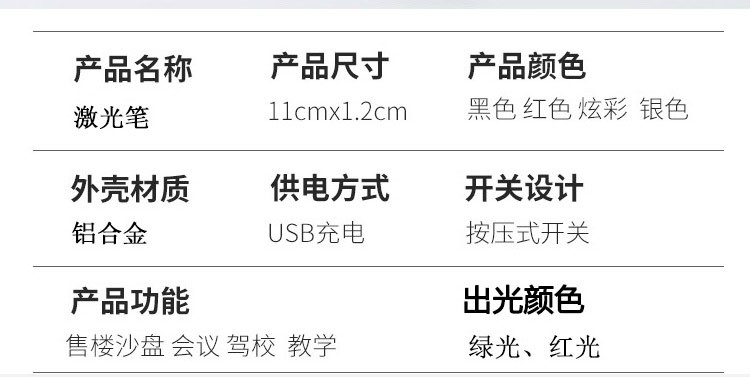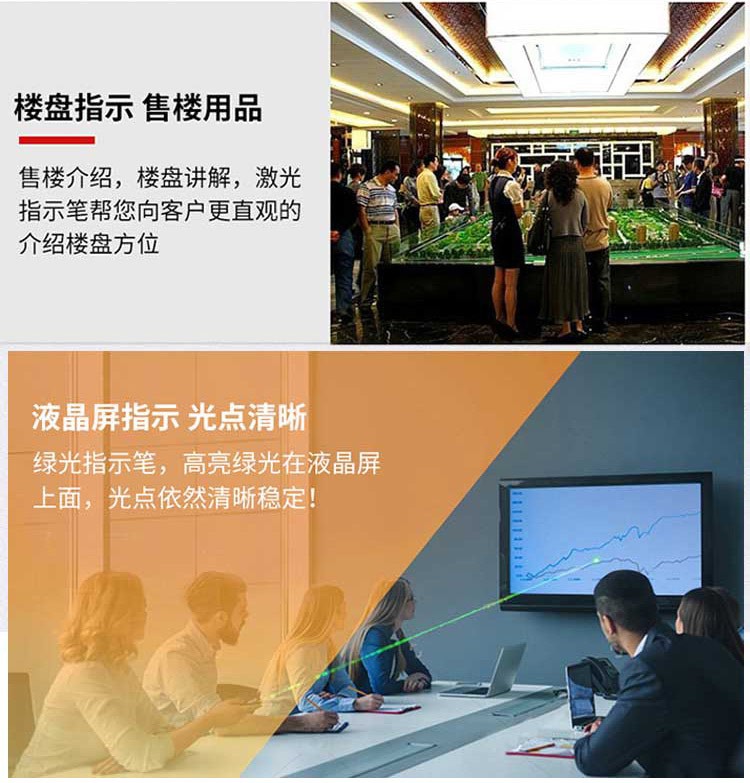 融誉 短款usb充电绿光激光手电 售楼处激光笔 镭射灯楼盘教练指示教鞭 售楼部激光灯 黑色