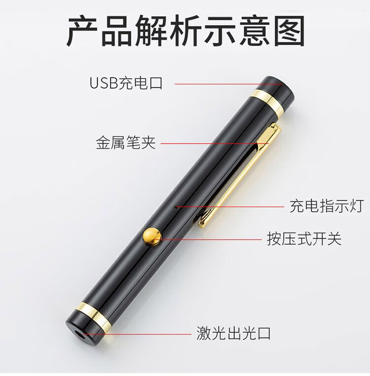 曼戈途升级超长续航版激光笔灯绿光强光远射镭射液晶屏红外线售楼沙盘笔 USB黑色红光(续航16小时)