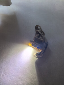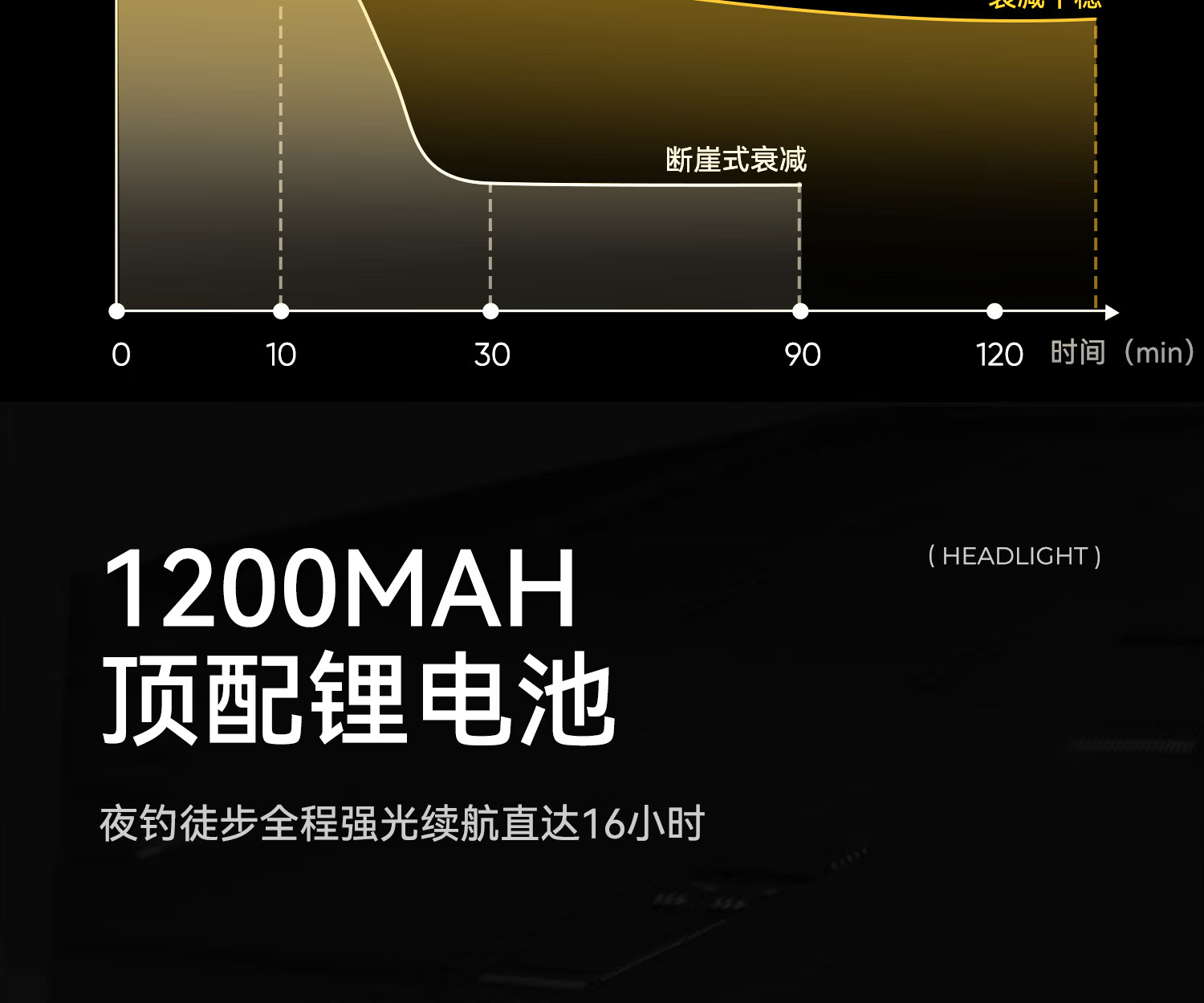 小灯挺轻便,强光效果比较好,夜晚照亮或者夜钓,足够足够了。还有一点值得赞的就是,这款头灯的感应器在左边,夜钓更需要这样的头灯。以前用过在右边的,实在太不方便了,提竿要先挥一下右手,有鱼也跑了。有些在前面的,感应距离太长,随便低个头或者提个杆都会影响感应,实在烦的很。红外距离不能过长,5-15最好了,这个虽然在侧边,但是感应距离做的也短,不会误操作,挺不错的。用了几天了,现在说说续航。当初问客服,说强光六七个小时,实际使用,四个小时就开始变暗,五个小时多一点就关机了😓使用感应强光,侧边的电量显示老是一闪一闪的,虽然方便看电量,但我感觉这样很费电。我从六点开启强光感应,到夜里十二点,第二颗灯珠都有点暗了,也就是说,用了差不多一半的电了。这样算下来,感应强光,也只能用一个通宵。基本就是这样子了。充了电再试还是这样,不会提高多少