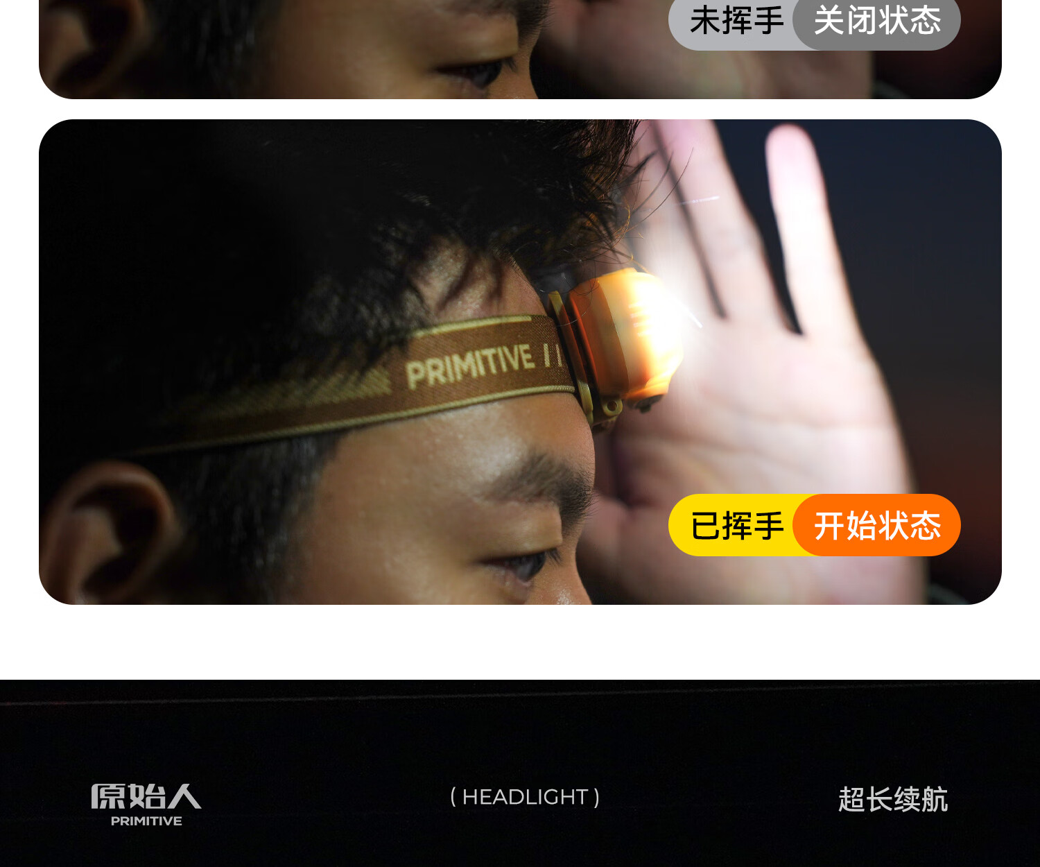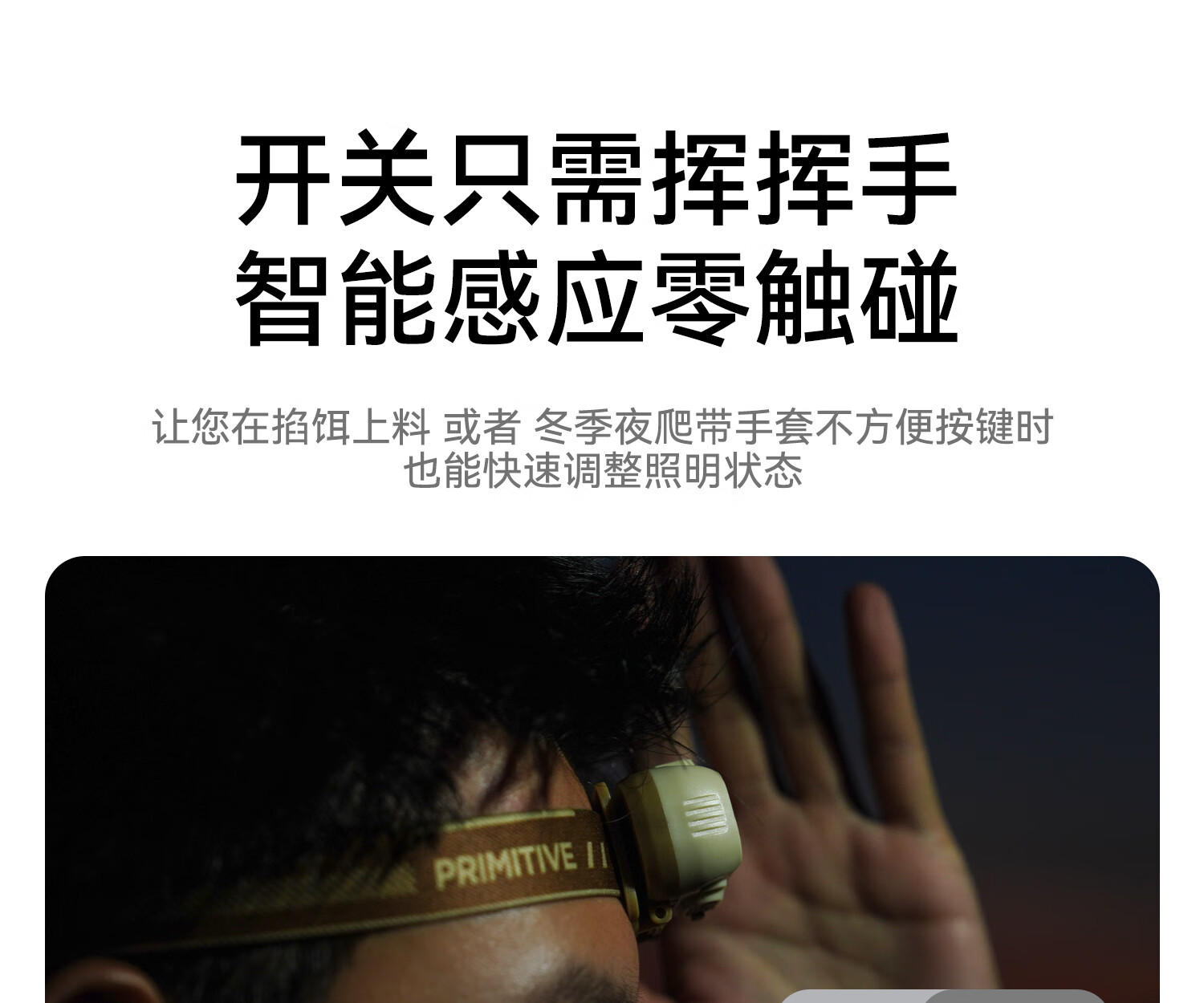 原始人(The Primitive)新款感应头灯超长续航夜钓灯强光超亮充电便携锂电池户外头戴式 破晓头灯-灰黑色【赠数据线】