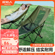 原始人(The Primitive)户外折叠椅躺椅露营椅子月亮椅便携办公室午休钓鱼沙滩休闲 脚托款网纱绿【三档可调】