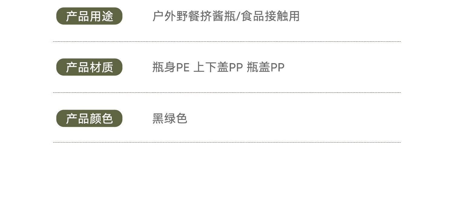 这款原始人挤酱瓶三件套真是露营必备神器!黑绿色搭配颜值超高,材质轻巧却非常耐用。三合一设计太实用了——调料、油、酱汁分装不串味,密封性很好完全不会漏。挤酱控制特别顺手,单手就能操作,烧烤时不会手忙脚乱。清洗也方便,瓶身没有死角。自从带了它出门野餐,再也不用带着笨重的瓶瓶罐罐了,收纳起来不占空间,让户外烹饪变得特别优雅!绝对是提升幸福感的露营好物,强烈推荐给热爱户外生活的朋友们!